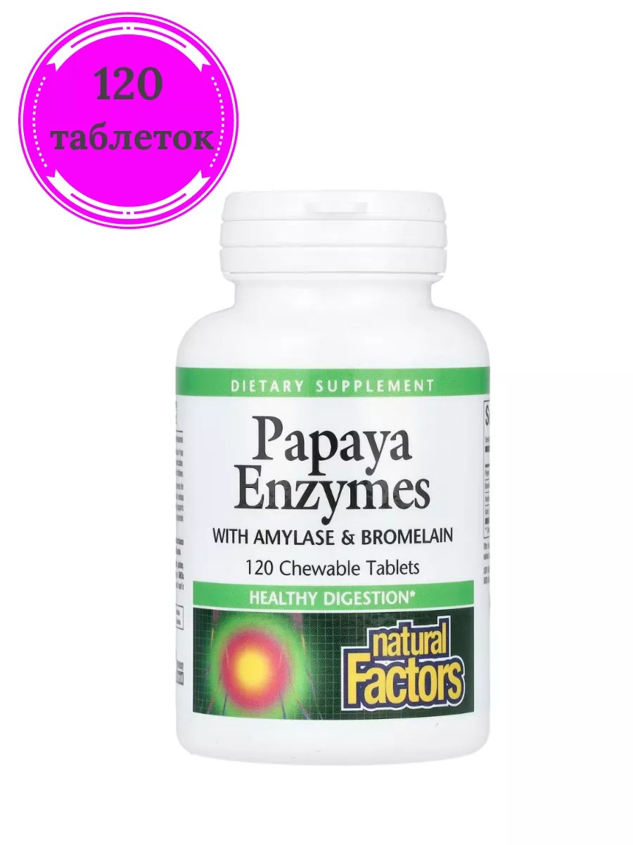 Natural Factors Папайа ферменты 120 жевательных таблеток, Papaya Enzymes