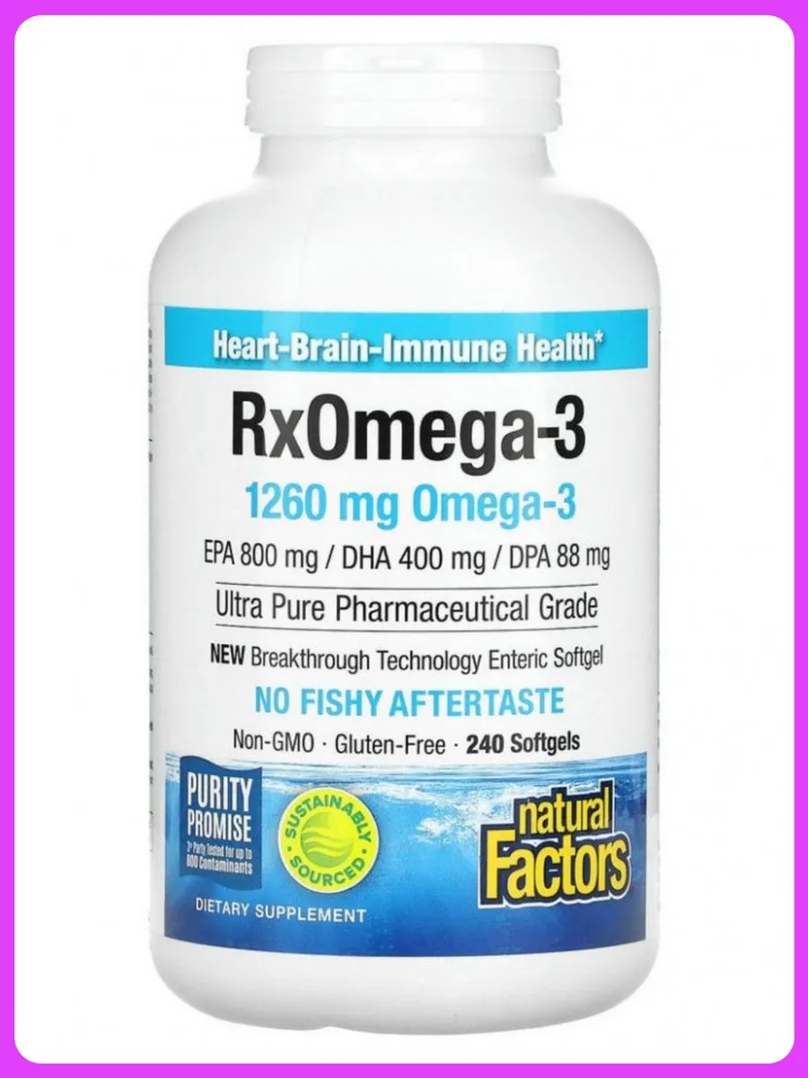 Пищевая добавка фармацевтической степени чистоты RxOmega-3 от Natural Factors — ваш надежный помощник в заботе о здоровье сердечно-сосудистой системы.