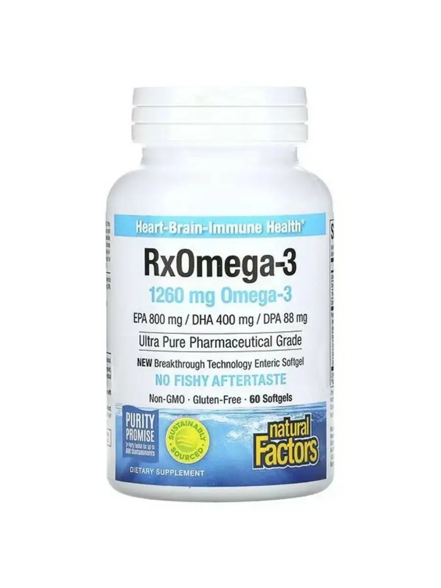 RxOmega-3 — это рыбий жир фармацевтической степени чистоты, обеспечивающий мощную концентрацию эйкозапентаеновой (ЭПК) и докозагексаеновой (ДГК) кислот.