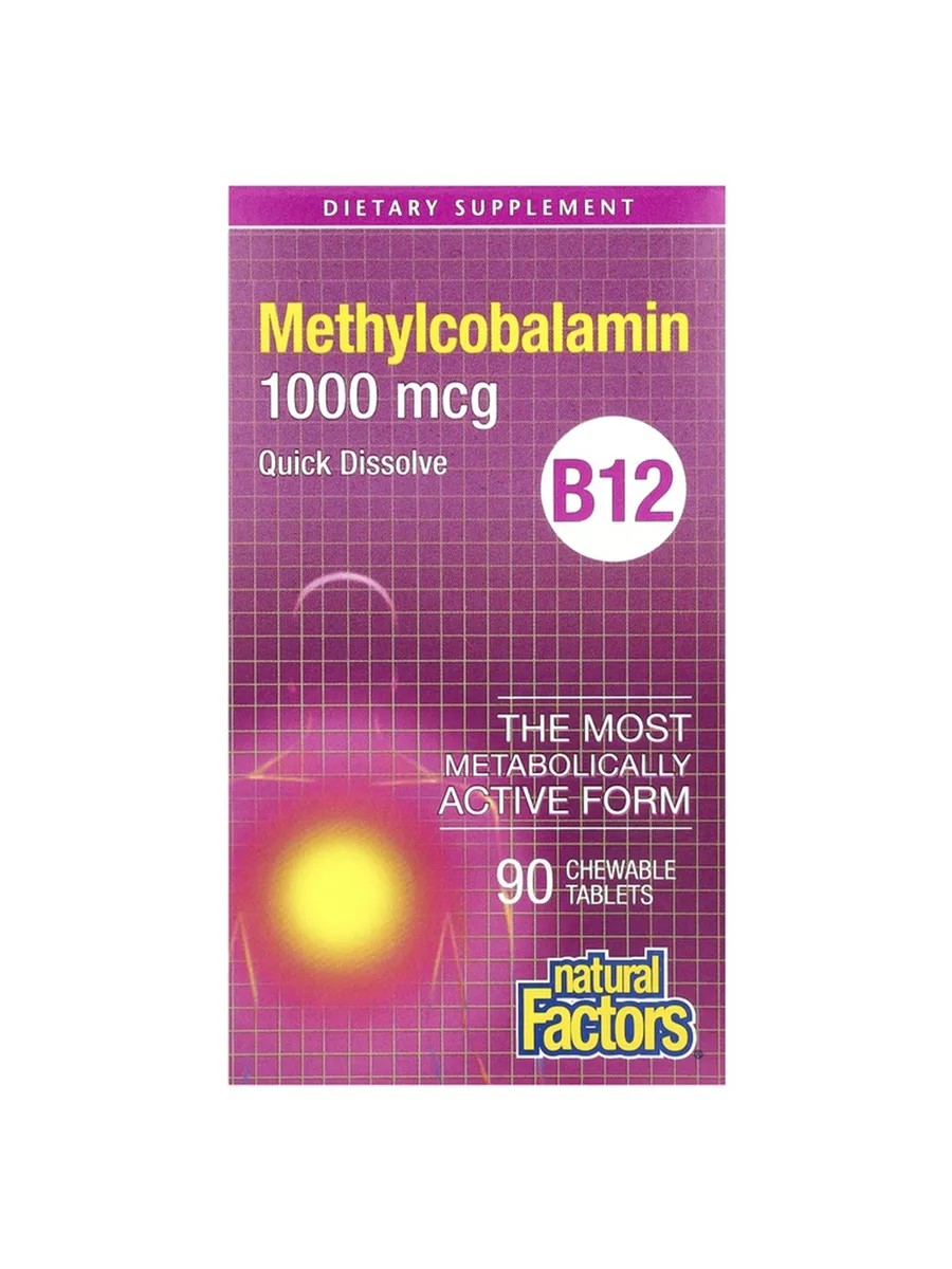 Natural Factors Витамин B12, метилкобаламин, 90 жевательных таблеток