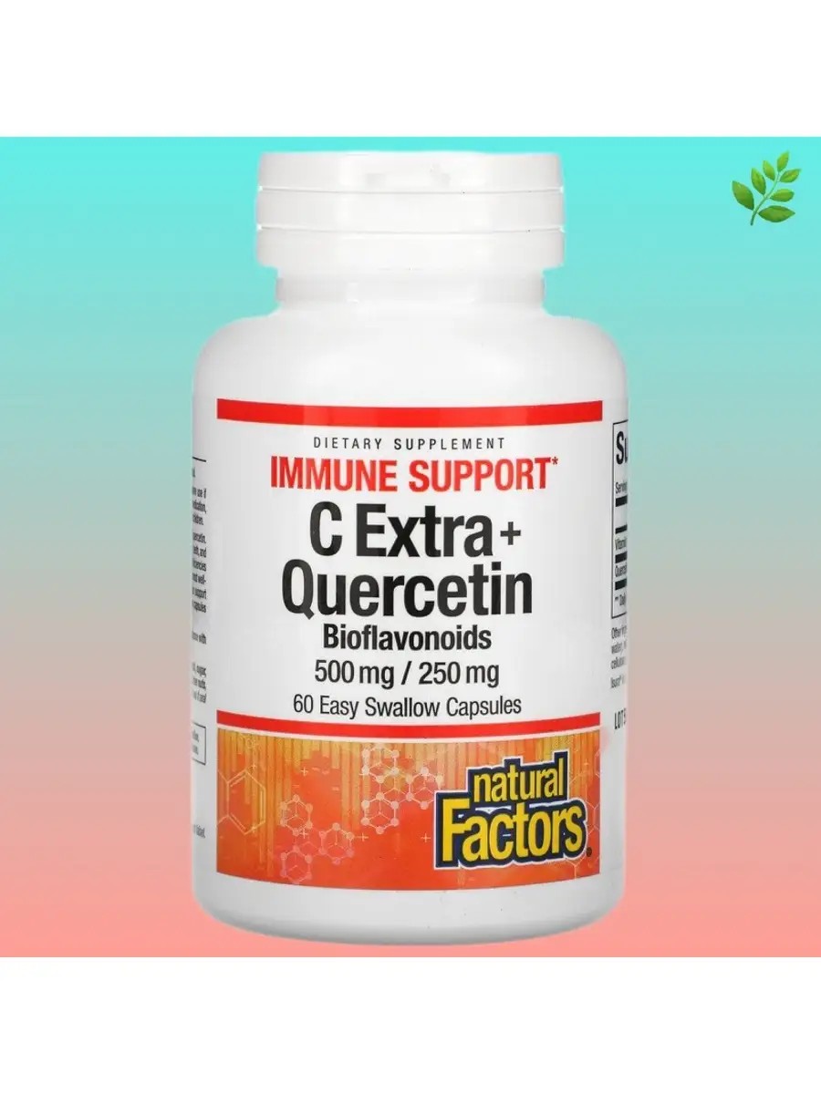 C Extra с кверцетином от Natural Factors содержит 500 мг витамина C и 250 мг кверцетина. Витамин C -это мощный антиоксидант, поддерживающий здоровье костей, хрящей, зубов и десен. Он защищает клетки от воздействия свободных радикалов и способствует их здоровому росту. Принимая витамин C, можно восполнить его нехватку в рационе. Кверцетин -один из самых известных антиоксидантных биофлавоноидов. Он нейтрализует свободные радикалы и помогает поддерживать нормальную работу носовых пазух, дыхательных путей и иммунной системы. Капсулы, которые легко глотать, по сравнению с таблетками аналогичного размера. Рекомендации по применению: принимать по 1 капсуле в день или в соответствии с рекомендациями врача.