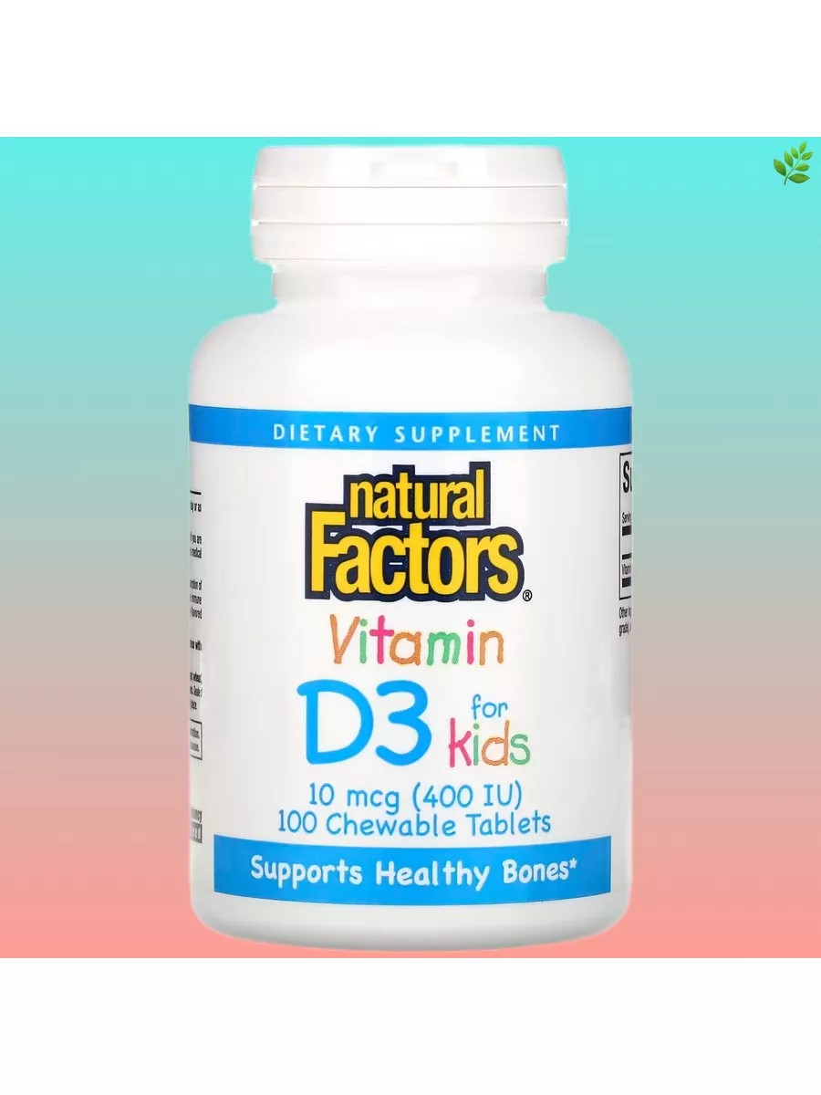 Natural Factors Витамин Д3, клубничный вкус, 10 мкг (400 МЕ)