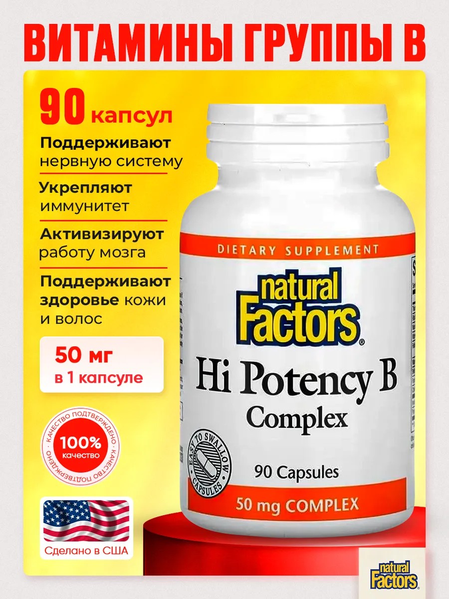 ★ Мощная формула с высокой биодоступностью. Комплекс Hi Potency B-Complex от Natural Factors содержит полный спектр витаминов группы В в активных, легкоусвояемых формах: