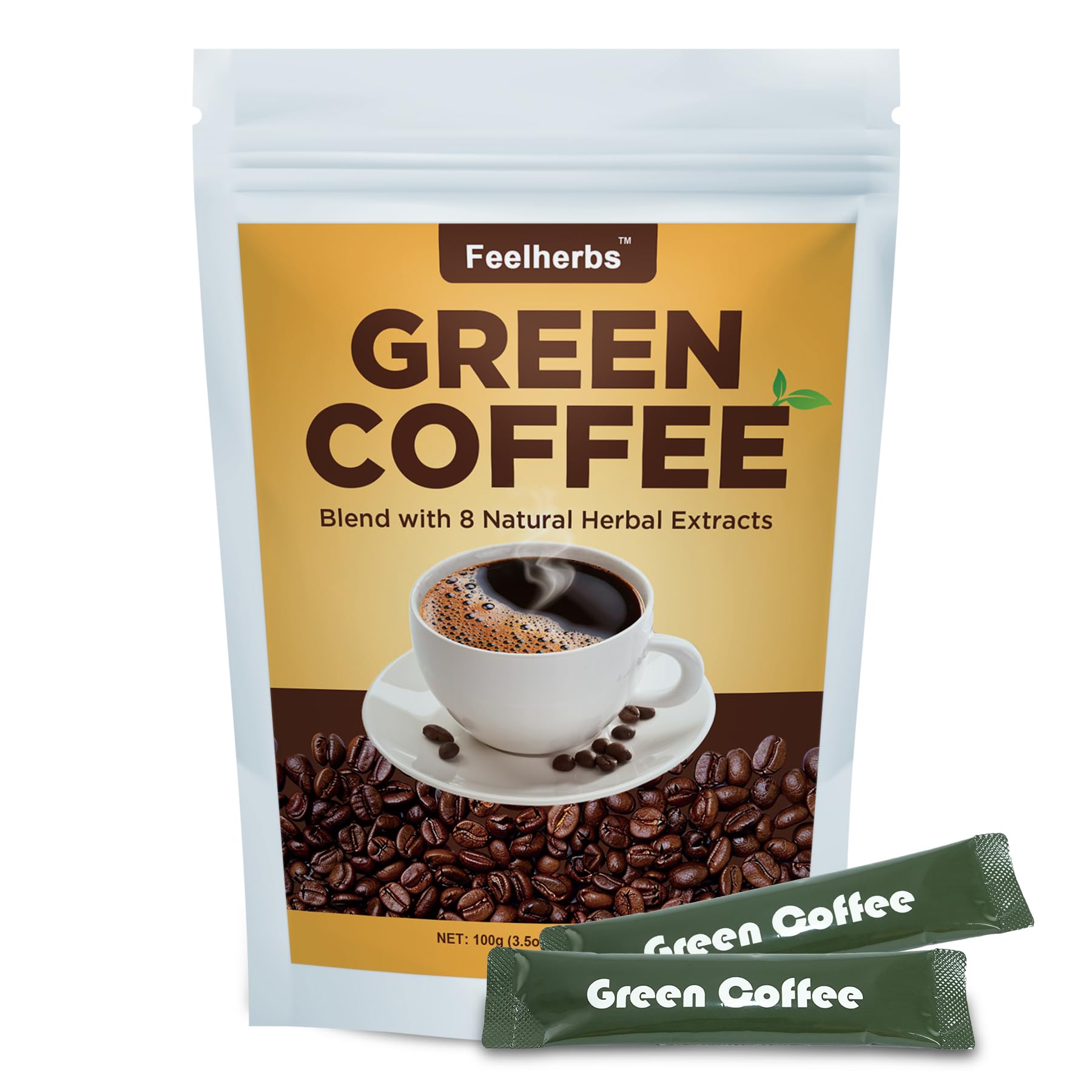 Natural Green Coffee for Metabolism & Energy, Green Coffee Beans Extract Instant Coffee with 8 Natural Blends Extracts, 10 Sachets, Vegan Friendly
