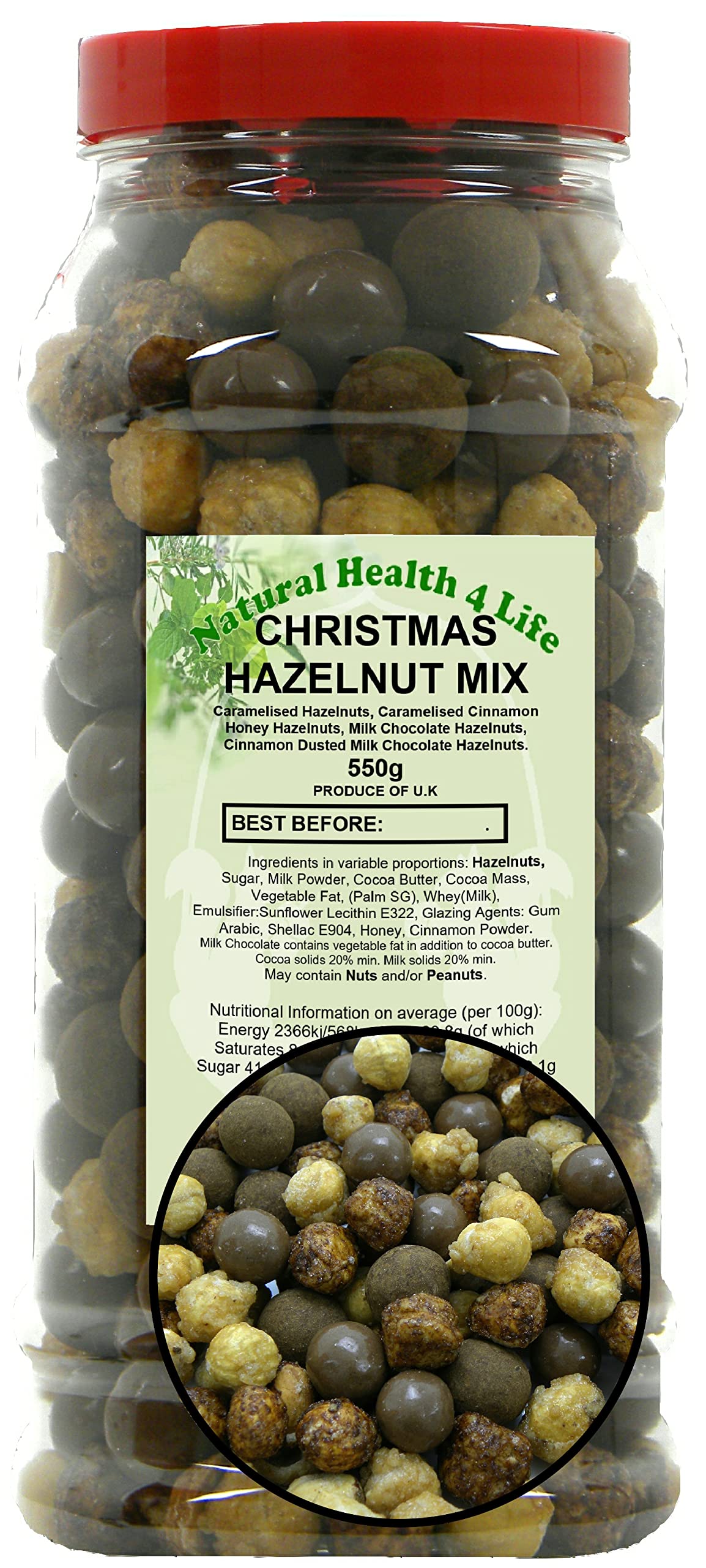 Natural Health 4 Life's caramelised chocolate cinnamon hazelnuts mix is a gourmet treat that combines the rich, nutty taste of hazelnuts with the sweet allure of caramelised sugar, the warmth of cinnamon, and the indulgence of milk chocolate. Each bite will pique your curiosity as you taste the different layers of flavour. The milk chocolate hazelnuts are a classic favourite, while the cinnamon-dusted milk chocolate hazelnuts add a spicy twist. The caramelised hazelnuts provide a sweet crunch, and the caramelised cinnamon honey hazelnuts offer a unique blend of sweetness and spice. But this mix isn't just about taste. It's also a source of fibre, contributing to your daily nutritional needs. This Hazelnut mix, weighing 550g, is packaged in a recyclable, presentation gift jar, which is induction sealed for prolonged freshness and also is complete with a screw top lid for ease of use.