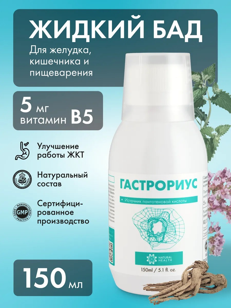 The dietary supplement "Gastrorius" from Natural Health is an effective product enriched with pantothenic acid (Vitamin B5), which is aimed at strengthening the brain, heart, and blood vessels.