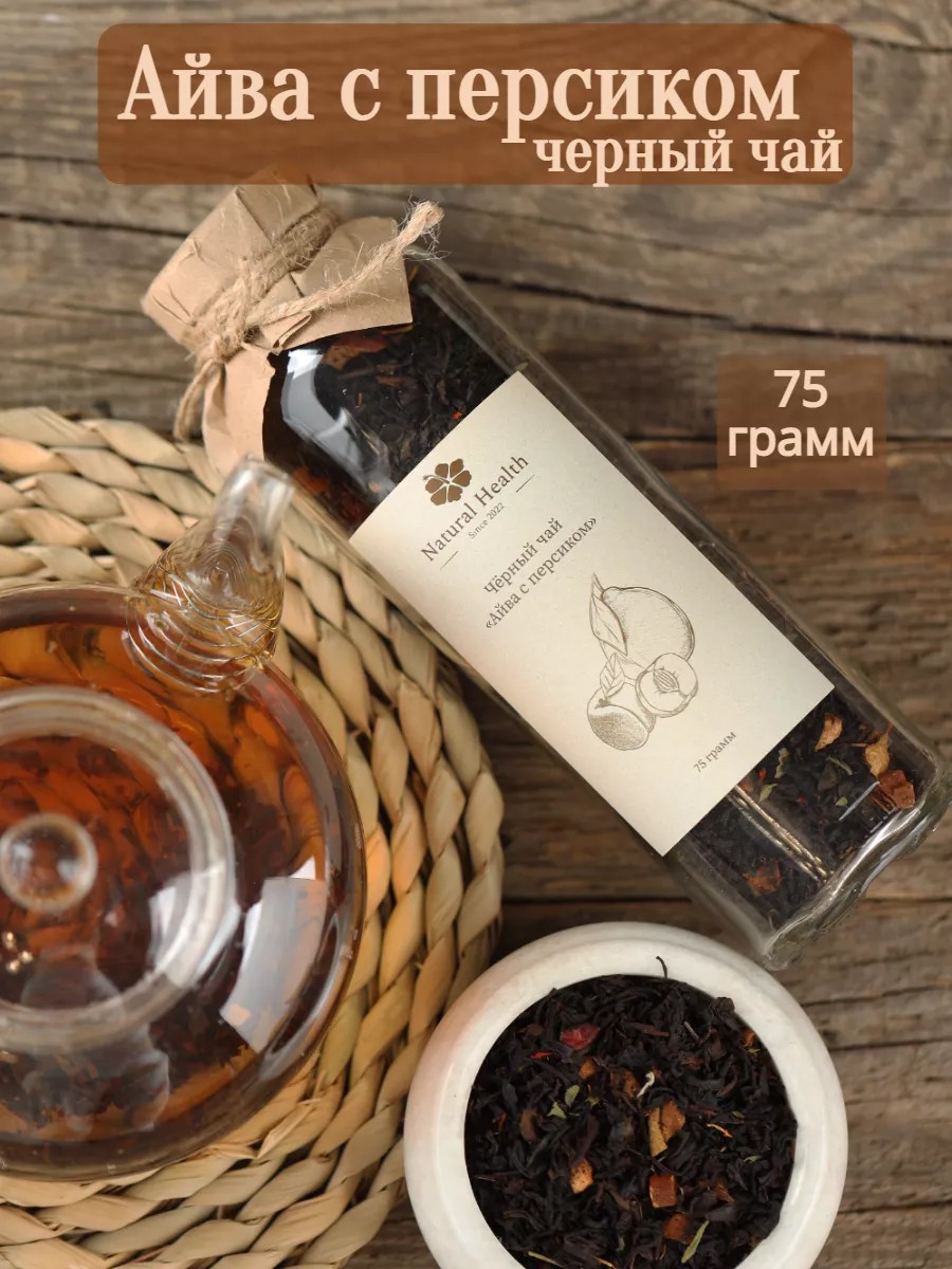 Черный чай листовой Айва с персиком 75г