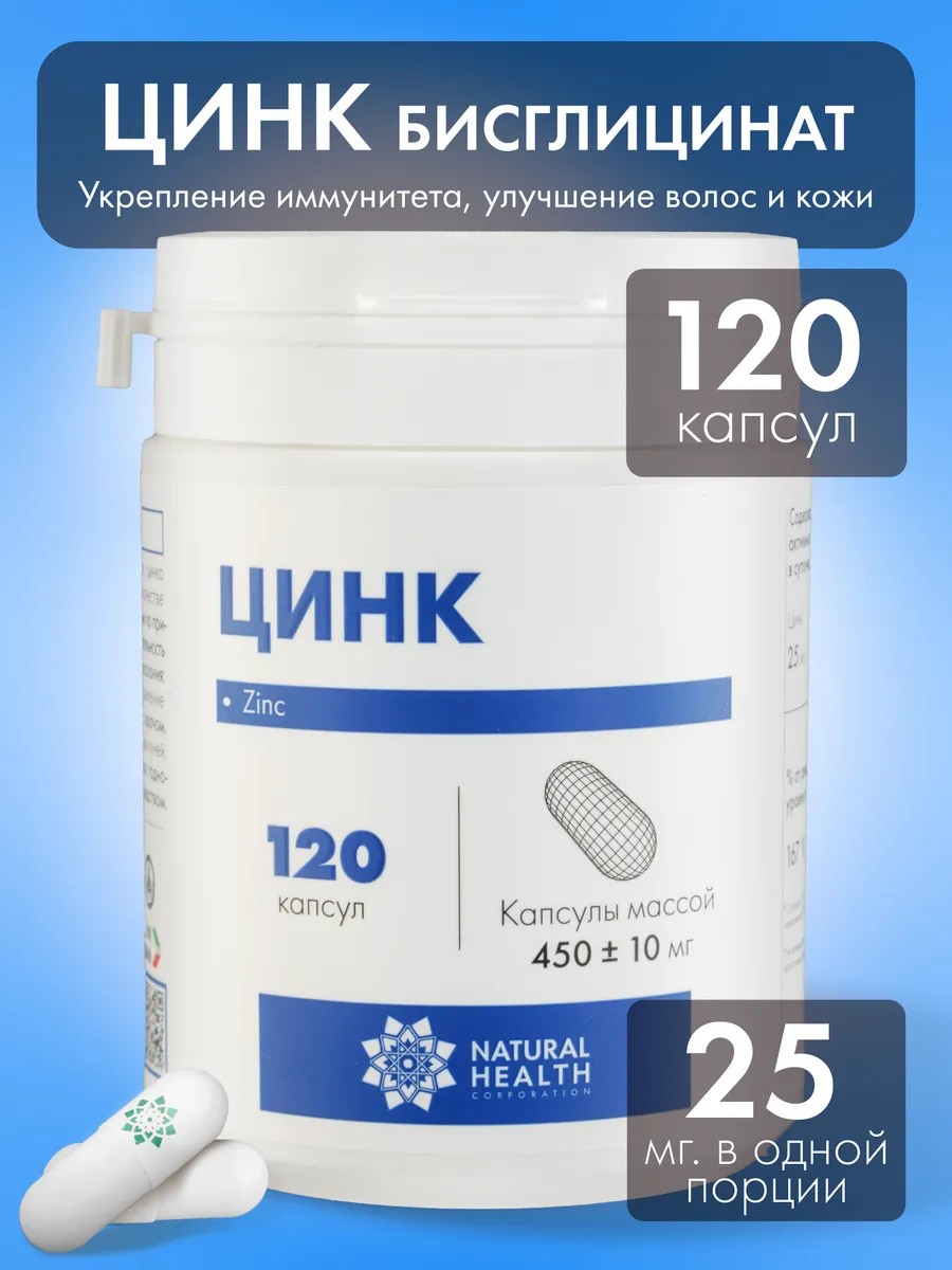 Биологически активная добавка к пище "Цинк" от Natural Health - это источник легкоусвояемого цинка в форме бисглицината, который необходим для поддержания крепкого иммунитета, здоровья кожи, волос и ногтей. Цинк играет важную роль в работе иммунной системы, защищая организм от инфекций и воспалений. Цинк нормализует работу иммунной системы и борется с вирусами, бактериями и грибками