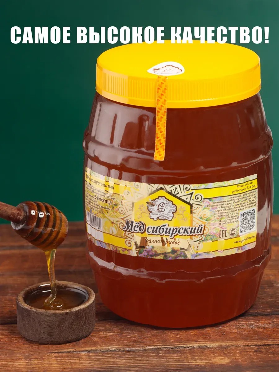 Мед натуральный, алтайский 3 кг разнотравье от Пасеки Соловьёвых – это идеальный выбор для тех, кто ценит натуральные продукты и ищет здоровое лакомство. Личная пасека находится в экологически чистом районе Алтайских гор и Республики Алтай. Этот мед собран с цветов разнотравья, что придает ему уникальный вкус и аромат. Он не содержит ГМО и искусственных добавок, что делает его идеальным выбором для всей семьи. Пищевая ценность меда включает в себя 8 г белка и 82 г углеводов на 100 г продукта, что делает его отличным источником энергии. Энергетическая ценность составляет 304 ккал на 100 г, что подходит для людей, ведущих активный образ жизни. В наличии свежий урожай 2024 года, который отличается содержанием полезных элементов. Наш органический мед хорошо использовать как десерт и общеукрепляющее средство. Алтайский мед 3 кг разнотравье – это не только вкусное лакомство, но и полезный продукт, который может стать частью здорового питания. Душистый мед как подарок для мамы и папы, для родных и любимых, бабушки и дедушки, презент на новый год и рождество.