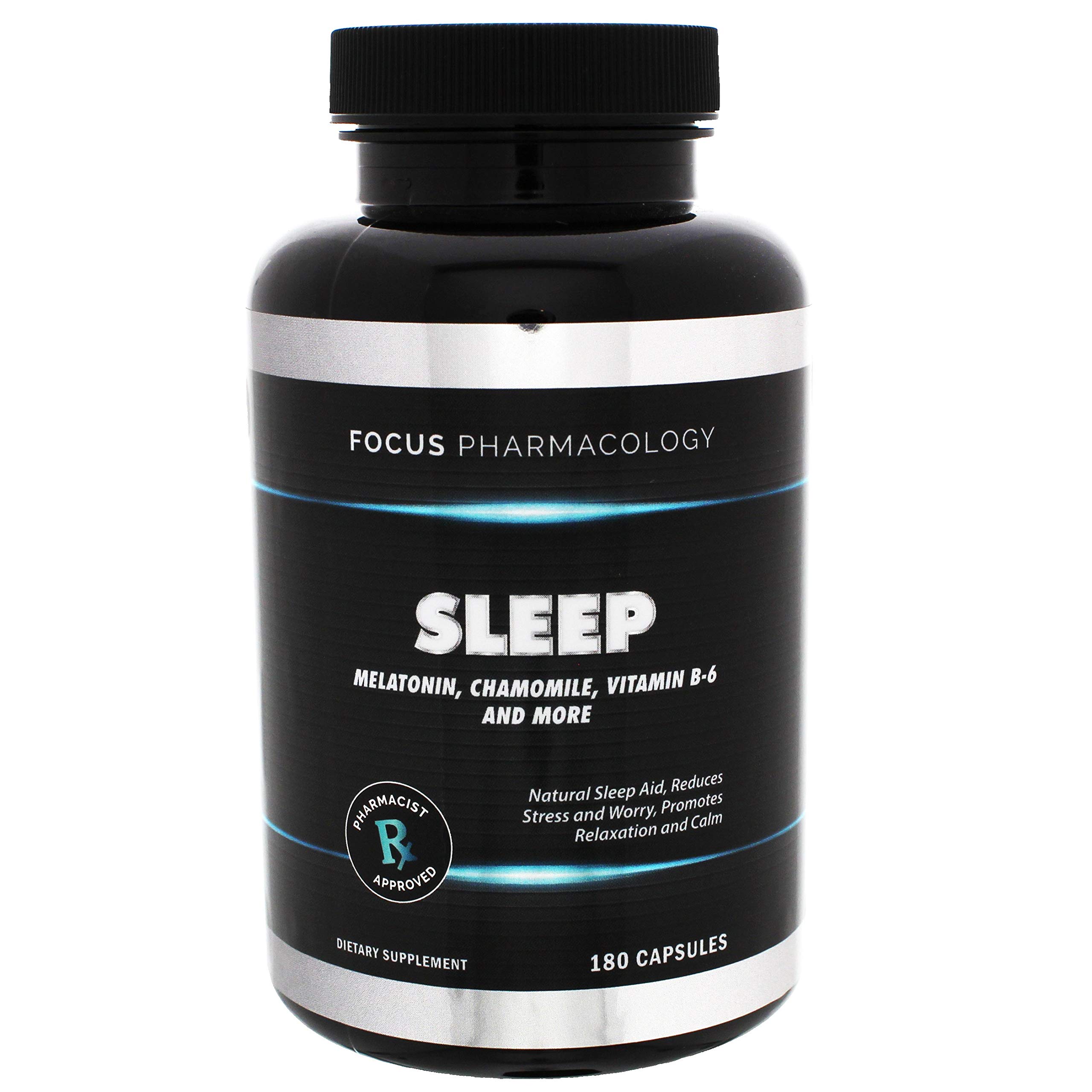 VALUE PRICED - Our formulas are often used by other brands in products usually sold at a cost of 40 mo. But our Independent pharmacists voted to keep prices low. To save even more, choose our 180-Ct bottle that delivers 3 months of supplements for the price of 2. SCIENTIFIC SUPPORT - Focus Pharma believes in only offering supplements that have a wealth of scientific research supporting their use. We don't look to include the hot new herb or "magic" ingredient. Our panel of Scientists and Pharmacists must agree with the scientific literatures reports of safety and efficacy before we will consider it in our formulas. PHARMACIST APPROVED - Designed by independent pharmacists with only the most potent, clinically tested, and safest ingredients. Trust your supplements to the same people that you trust with your prescriptions. LIFETIME SATISFACTION GUARANTEE: If you are not satisfied with any Focus Pharmacology product, return to seller (your local pharmacist) or directly to focus pharmacology for a full refund. Vitamin B6, L-Tryptophan, Valerian, Goji (Wolfberry), Chamomile, Lemon Balm, Passion Flower, L-Taurine, Hops, St. John's Wort, Gaba, Skullcap, L-Theanine, Ashwagandha, Inosotol, 5-HTP, Melatonin.