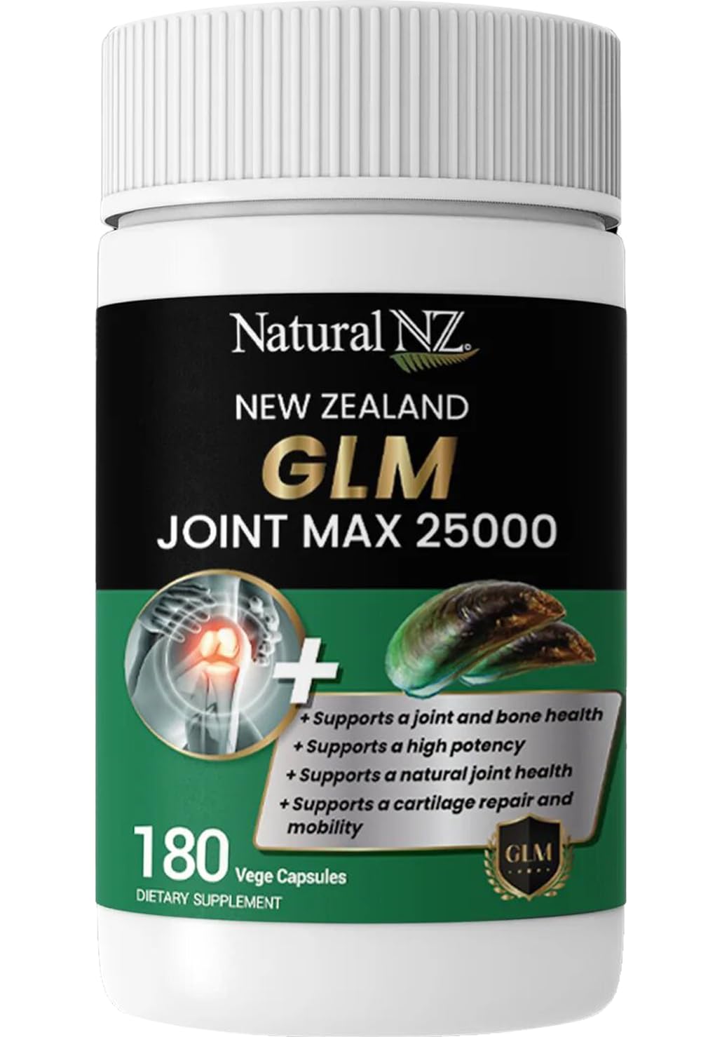 Green Lipped mussels are well known to support joint mobility as well as joint and cartilage health. Natural NZ JOINT MAX GLM 25,000mg may provide symptomatic relief of mild osteoarthritis and helps support general wellbeing. -100 New Zealand Pure Green Lipped Mussel -Supports a joint and bone health -Supports a high potency -Supports a natural joint health -Supports a cartilage repair and joint mobility INGREDIENTS Premium Green Lipped Mussel Extract Powder 1,000mg Equiv. to Fresh Lipped Mussel 25,000mg Vitamin D 1,000IU RECOMMENDED DOSAGE For adults, take 1 capsule daily. Best taken with food. Or as directed by your healthcare professional. CAUTIONS Contains Shellfish. Do not take this product if you are allergic to shellfish. No added colour or preservatives. Store in a dry and cool area. Do not use if tamper evident stickers are broken or missing or bliser seal is broken. Not to be taken during pregnancy or lactation. Always read the label. Take only as directed and consult your healthcare professional if symptoms persist.