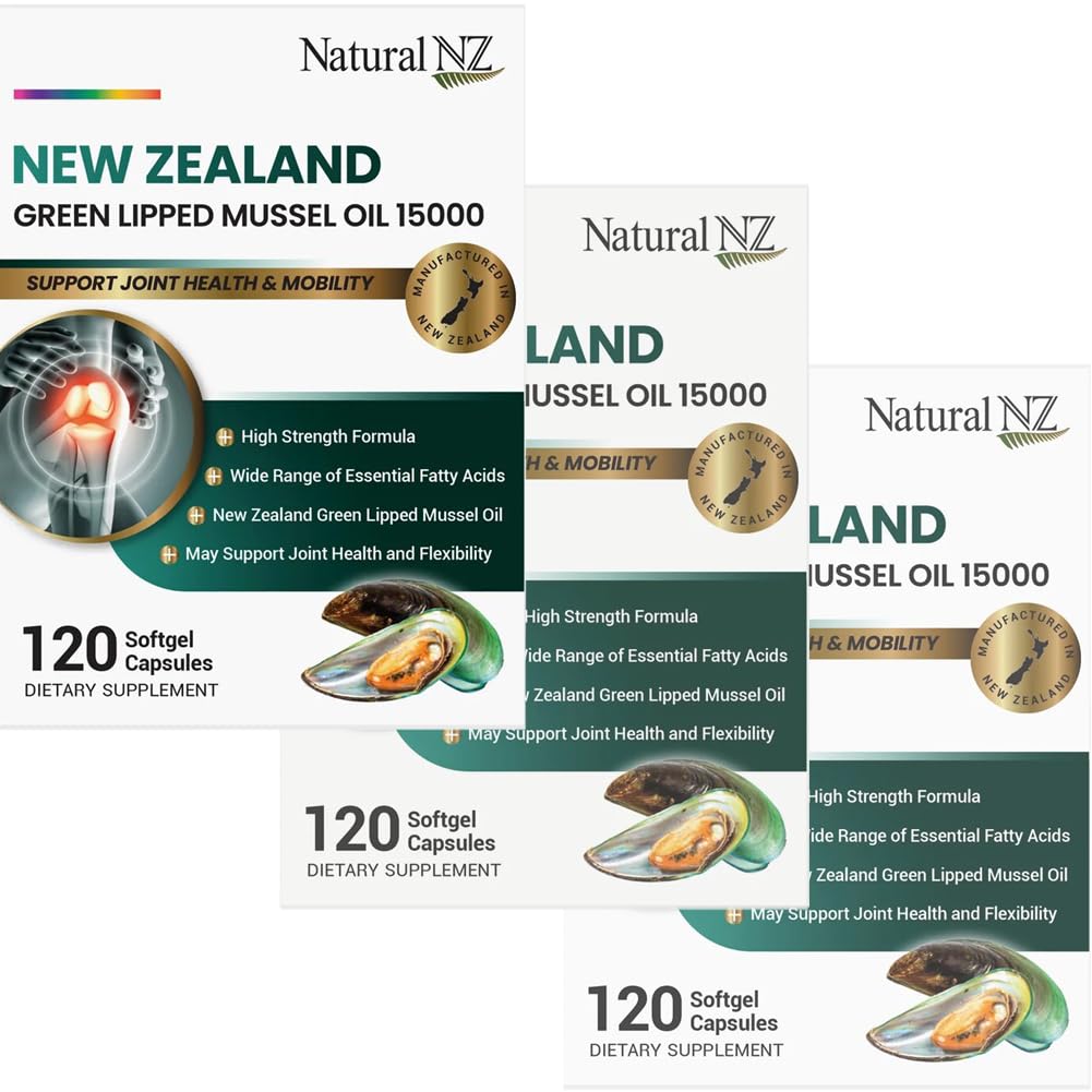 Natural NZ New Zealand Green Lipped Mussel Oil 15000 contains premium grade, New Zealand sourced Green Lipped Mussel Oil, which is extracted from fresh Green Lipped mussels harvested from the pristine waters in the Marlborough Sounds. Green Lipped Mussels are well known for supporting joint and cartilage health, as well as joint mobility. It also contains a unique combination and rich source of health-promoting essential fatty acids. -100 New Zealand Pure Green Lipped Mussel -High Strength Formula -Wide Range of Essential Fatty Acids -May Support Joint Health and Flexibility -May Supports a cartilage repair and joint mobility INGREDIENTS New Zealand Green Lipped Mussel Oil -Equiv.to Fresh Green Lipped Mussel - 15,000mg (100 New Zealand Sourced) Vitamin E - 5mg RECOMMENDED DOSAGE Adults take 1-2 capsules daily or as directed by healthcare professional. For enhanced dose take 2 capsules daily. CAUTIONS Contains Shellfish. Do not take this product if you are allergic to shellfish. No added colour or preservatives. Store in a dry and cool area. Do not use if tamper evident stickers are broken or missing or bliser seal is broken. Not to be taken during pregnancy or lactation. Always read the label. Take only as directed and consult your healthcare professional if symptoms persist.
