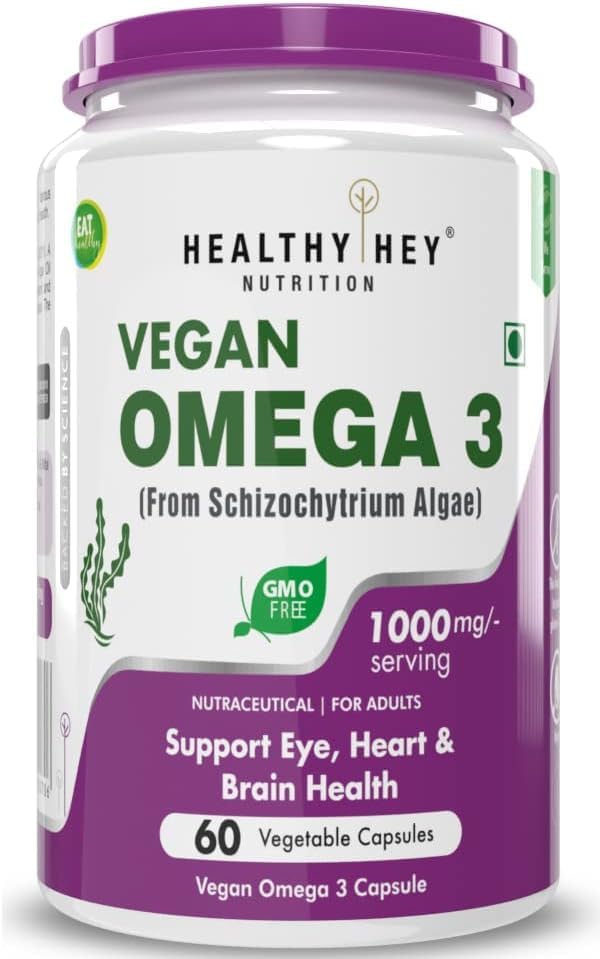 MADE IN INDIA – Our Vegan Omega 3 is bottled and manufactured in INDIA, in a facility that is registered with FSSAI, Halal and USFDA. BRAIN, HEART, JOINT SUPPORT: Omega-3's have been shown to support heart, brain, joints, and immune system health. DHA may assist with cognition for clarity and focus. BIOAVAILABLE OMEGA 3 - Our 1000mg of Vegan Omega 3 contains a total of 100mg of DHA. BIOAVAILABLE OMEGA 3 - Our 1000mg of Vegan Omega 3 contains a total of 100mg of DHA.