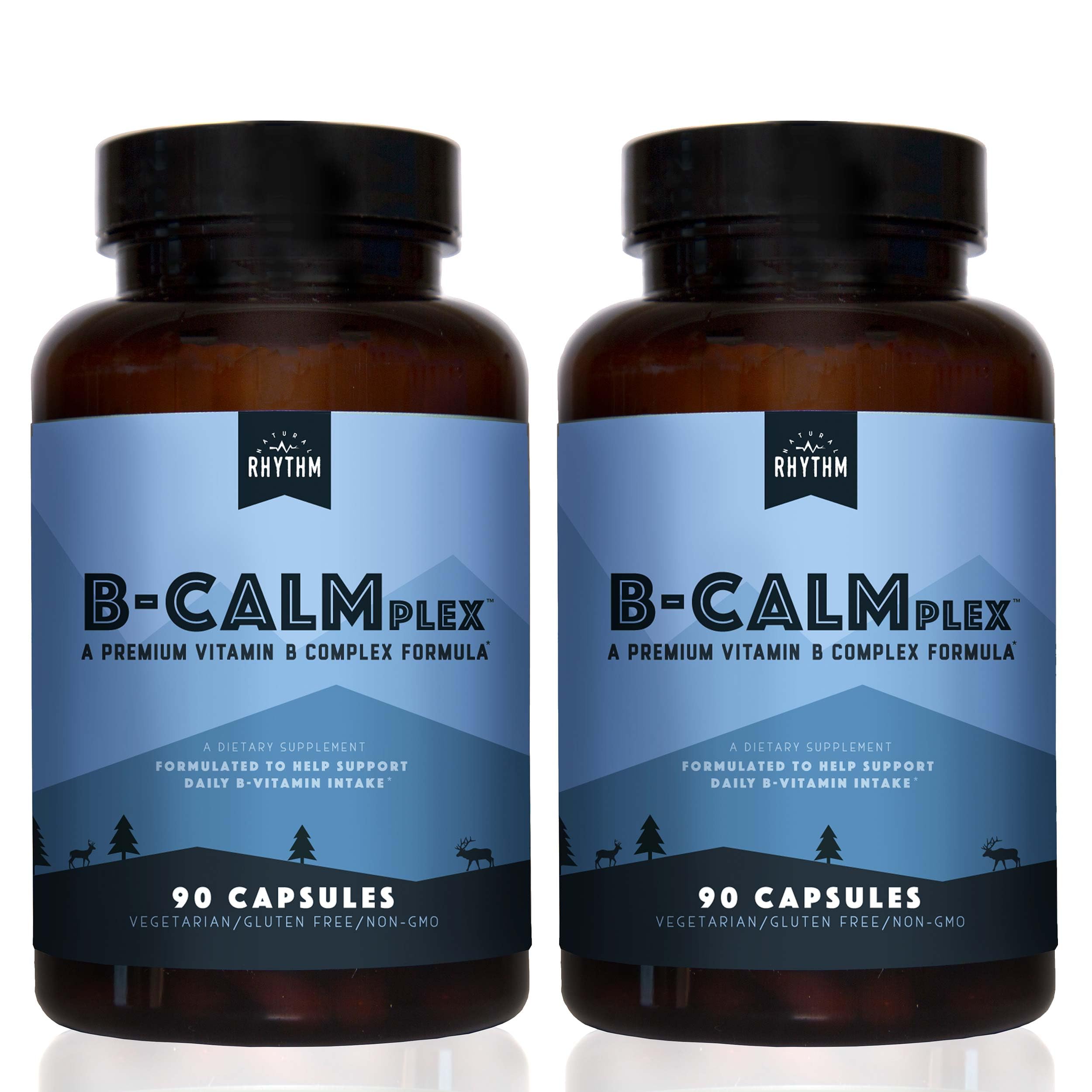 Natural Rhythm B-CALMplex 2-Pack B-Complex Vitamin Supplement Comprehensive B Vitamin Blend with Methylfolate & B12 3 Month Supply 90 Capsules
