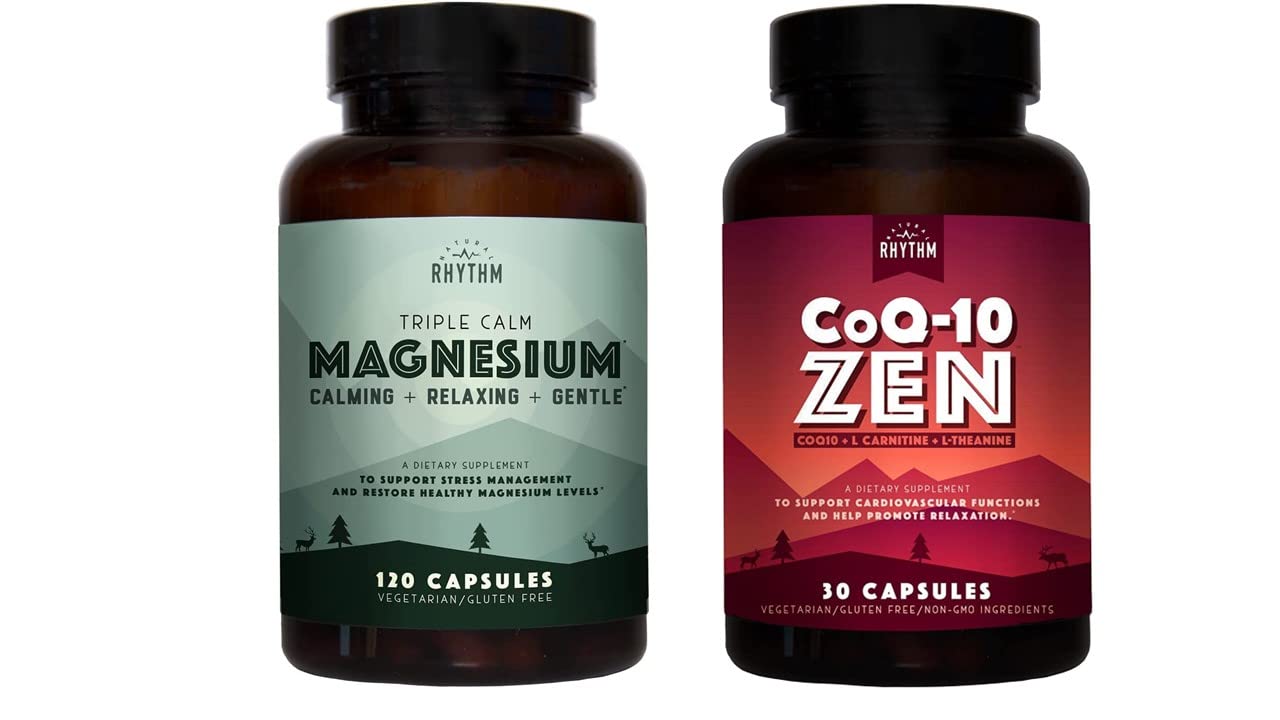 Natural Rhythm Cardio Calm Bundle - Triple Calm Magnesium 150mg 120 Capsules + CoQ10-ZEN (Coenzyme Q10 + L-Carnitine + L-Theanine) 30 Capsules
