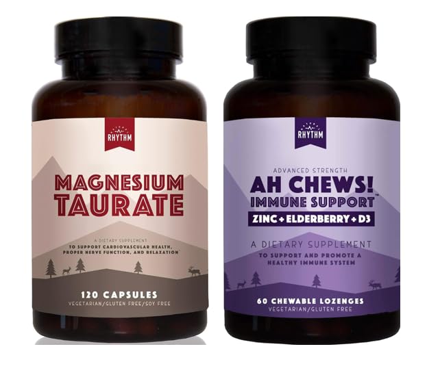 IMMUNE BOOSTER: Don't wait for sickness to strike! Activate your natural immune defense with the potent power of Elderberry, Zinc, and Vitamin D – in an easy to chew lemon berry flavored lozenge – loved by kids and adults alike. BRAIN HEALTH FORMULA: Magnesium taurate contains an amino acid called taurine, which has a calming, neuroprotective effect in the brain. HEART HEALTHY FORMULA: Low levels of magnesium can multiple health issues supplementing with Magnesium Taurate can be beneficial in promoting increased health and wellness. ONLY THE FINEST INGREDIENTS: Our products are meticulously crafted with high-quality ingredients. It stands as a gluten-free, sugar-free, vegetarian, non-GMO supplement, free from yeast, soy, artificial colors, or flavorings—an exemplar of uncompromising quality and purity. RESTORE YOUR NATURAL RHYTHM: Naturally boost your immune system to improve the quality of life. We, at Natural Rhythm want to help you to return to your natural, calm, healthy rhythm of life in simple and sustainable ways.