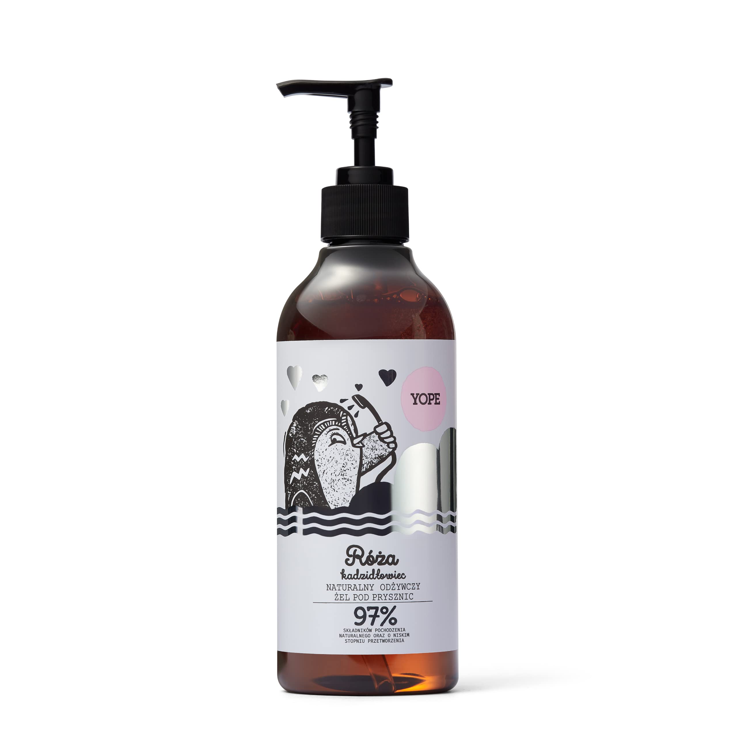 : natural nourishing shower gel. Scent: sensual, oriental like a luxurious perfume. It works: Polyphenol from the French rose gives flowers freshness, skin moisture and cell regeneration. Rose extract improves skin tension and protects it against free radicals, has a soothing and relaxing effect. We have also added frankincense extract to the gel, which greatly strengthens, relieves inflammation and soothes advanced blood vessels. After bathing, the skin is moisturized, elastic, smooth and feels soft. This is partly due to an Ecocert-certified moisturizing and moisturizing ingredient, which is extracted from palm kernel oil and corn, and a neutral pH value that does not irritate or dry out. For all skin types, including sensitive and mature. Ingredients: 97 origin ingredients natural and low processed. INCI: Aqua, sodium cocoamphoacetate, cocamidopropyl betaine, lauryl glucoside, sodium chloride, disodium cocoyl glutamate, citric acid, sorbitan sesquicaprylate, sodium sunflower vapouracetate, glycerin, boswellia carterii hair extract, rose gallica extract, perfume, sodium benzoate, potassium sorbate.Natural product.Natuurlijke douchegel Rose en Kadzidlowiec - YOPE 400ml : natuurlijke verzorgende douchegel. Geur: sensueel, oriëntaals als een luxe parfum. Het werkt: Polyfenol uit de Franse roos geven bloemen frisheid, huidvochtigheid en celregeneratie. Rozenextract verbetert de huidspanning en beschermt deze tegen vrije radicalen, werkt rustgevend en ontspannend. We hebben ook aan de gel wierook extract toegevoegd, dat sterk versterkt, ontstekingen verlicht en geavanceerde bloedvaten kalmeert. Na het baden is de huid van vocht voorzien, elastisch, glad en voelt zacht aan. Dit komt onder andere door een Ecocert-gecertificeerd hydraterend en hydraterend ingrediënt, dat uit palmpitolie en maïs wordt gewonnen, en een neutrale pH-waarde die niet irriteert of uitdroogt. Voor alle huidtypes, ook gevoelige en rijpte. Ingrediënten: 97 oorsprong ingrediënten natuurlijk en laag verwerkt. INCI: Aqua, natriumcocoampfoacetaat, cocamidopropyl betaïne, laurylglucoside, natriumchloride, dinatriumcocoylglutamaat, citroenzuur, sorbitaan sesquicaprylaat, natriumzonnebloemendampfoacetaat, glycerine, boswellia carterii harextract, roze-gallica extract, parfum, natriumbenzoaat, kalium sorbat.Natuurlijk product.