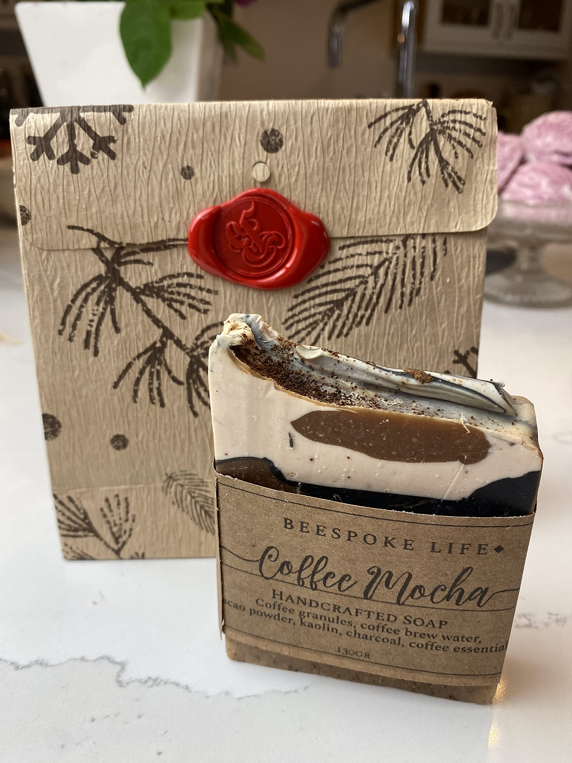 NATURAL SOAP Bar GIFT BOX HANDMADE 100% ORGANIC INGREDIENTS NO COLOURING NO ADDITIVES NO CHEMICALS. PALM FREE CRUELTY FREE (Coffee Mocha)