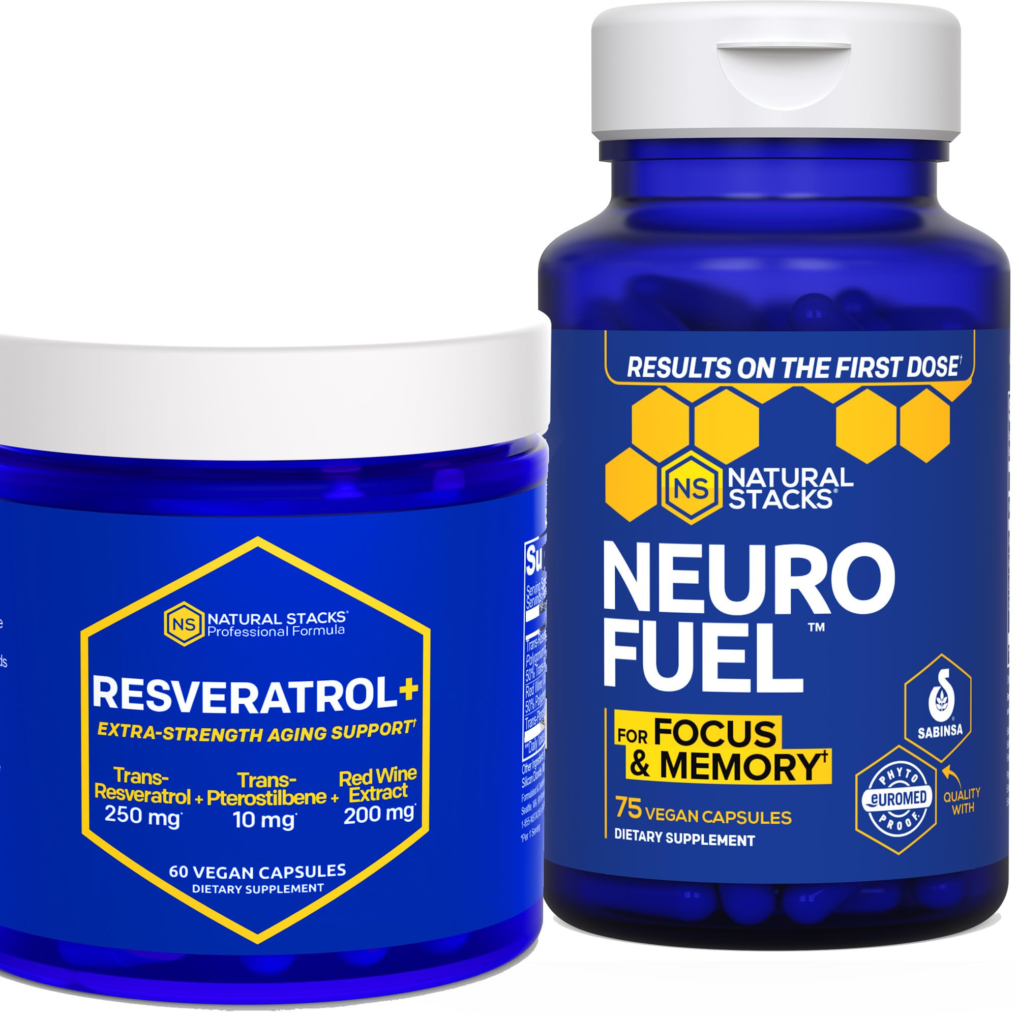NATURAL STACKS NeuroFuel & Resveratrol+ Supplement Bundle - Supports Focus Memory & Healthy Brain Aging* - 135 Capsules