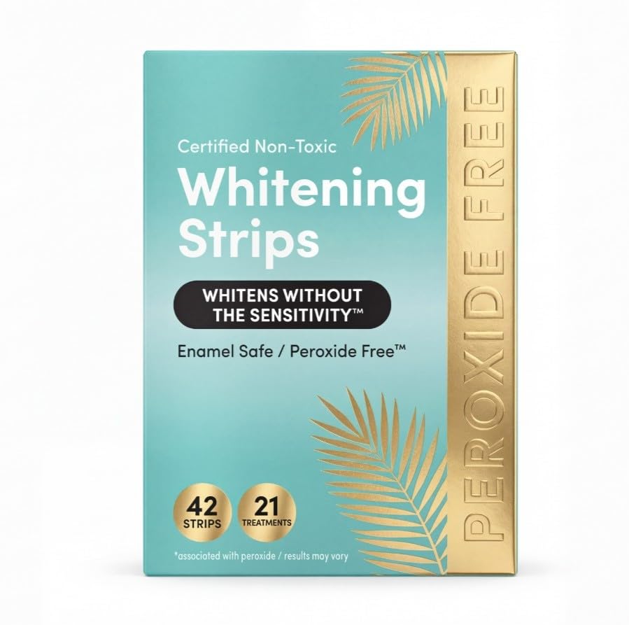 COMPLETE 21-DAY WHITENING PACK: Each box contains 42 individual strips (21 upper 21 lower). Easy to apply, non-slip design, and mess-free. Simply peel, apply, and reveal your most confident smile yet!. ? ERASE YEARS OF STAINS: Whether it's coffee, tea, wine, or tobacco, our advanced formula targets tough discoloration. Get visible results in as little as 7 days and maintain your glowing smile with just 30 minutes of daily wear. ENAMEL-SAFE GENTLE ON GUMS: Say goodbye to harsh chemicals. Our strips are microbiome-safe and protect your natural tooth structure. Perfect for daily use, even for those with thin enamel or highly sensitive gums. ? BRIGHTER SMILE WITHOUT THE STING: Achieve professional-level whitening results from the comfort of home. Our peroxide-free formula is specifically designed to lift deep stains without causing the painful sensitivity often associated with traditional whitening kits.