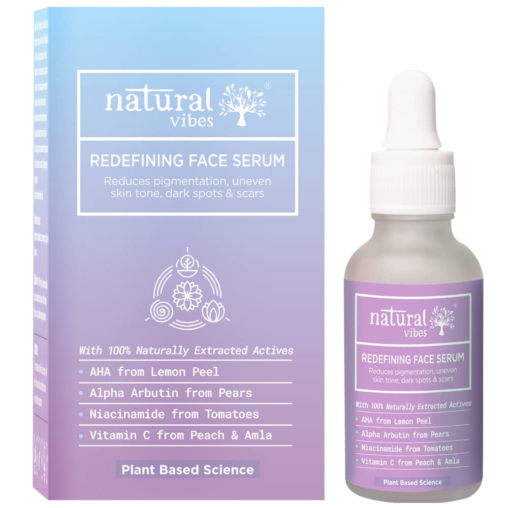 Natural Vibes Redefining Face Serum | With 100% Plant Based Niacinamide Vitamin C Alpha Arbutin & AHA | Reduce Pigmentation | Dark Spots & Scars | Glow & Hydrate |30 ml | For Men & Women