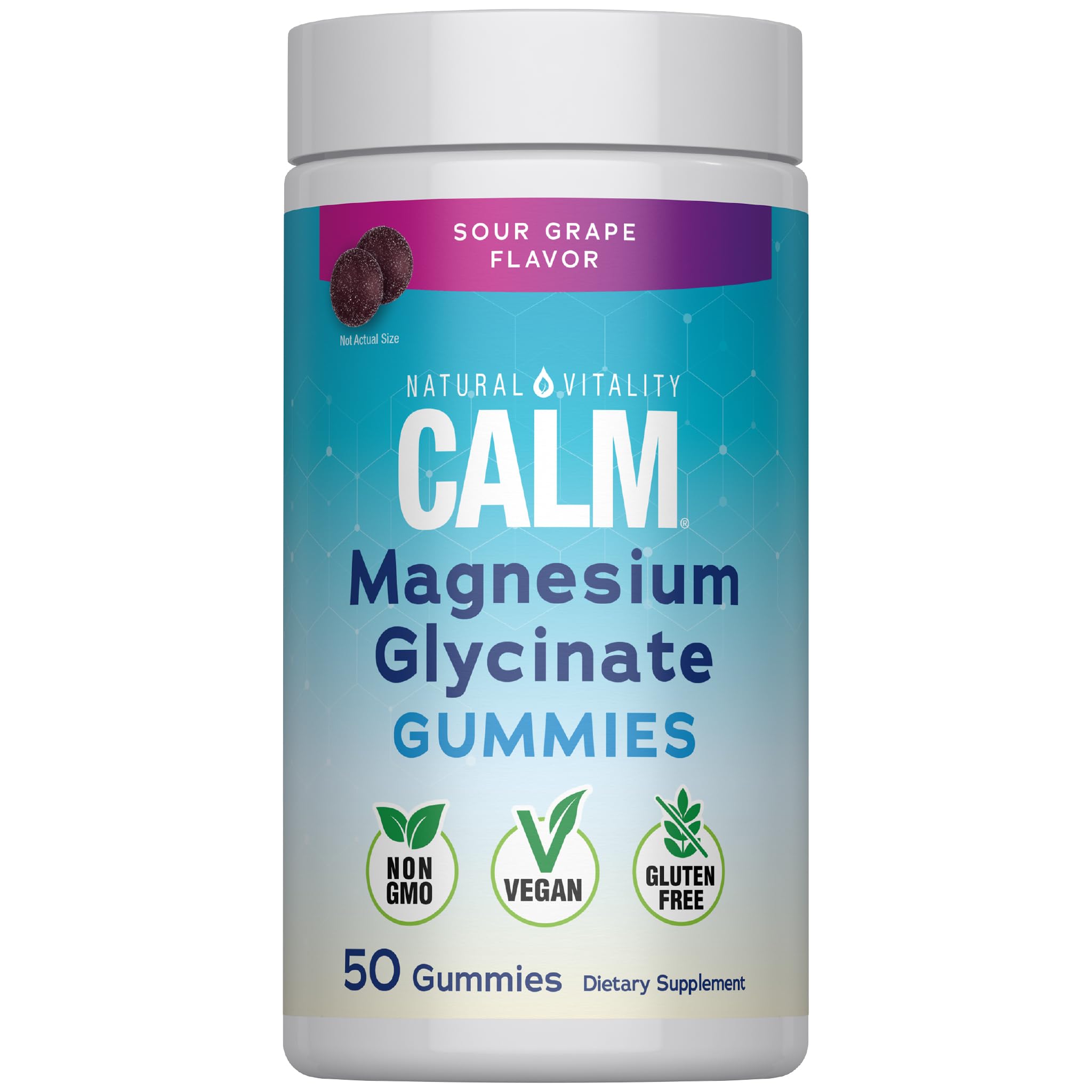 Natural Vitality Calm Magnesium Glycinate Gummies | Soup Grape Flavor | Non-GMO Vegan & Gluten Free Supplement | 50 Count