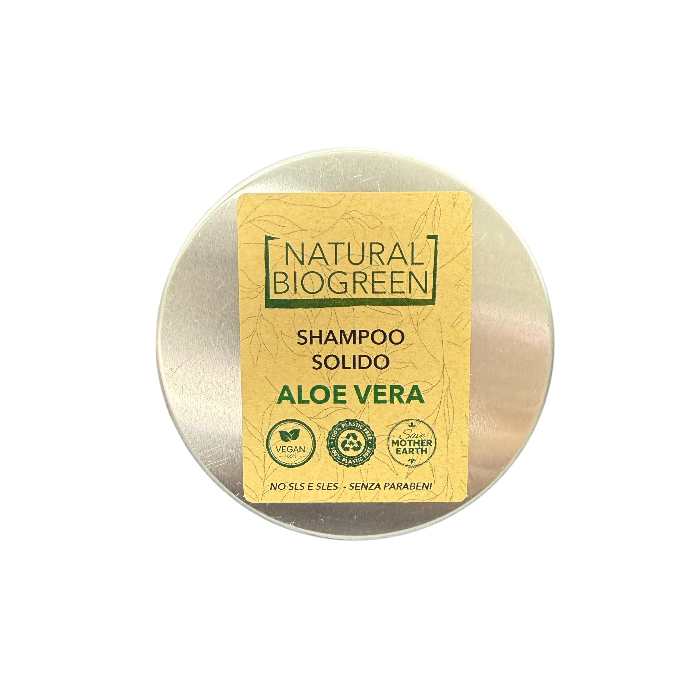 Naturalbiogreen Aloe Vera Solid Shampoo with Vegan Box 60g - The shampoo is vegan-friendly, plastic-free, SLS-free, and paraben-free. INGREDIENTS Vegetable Oil, Aqua, Glycerin, Parfum