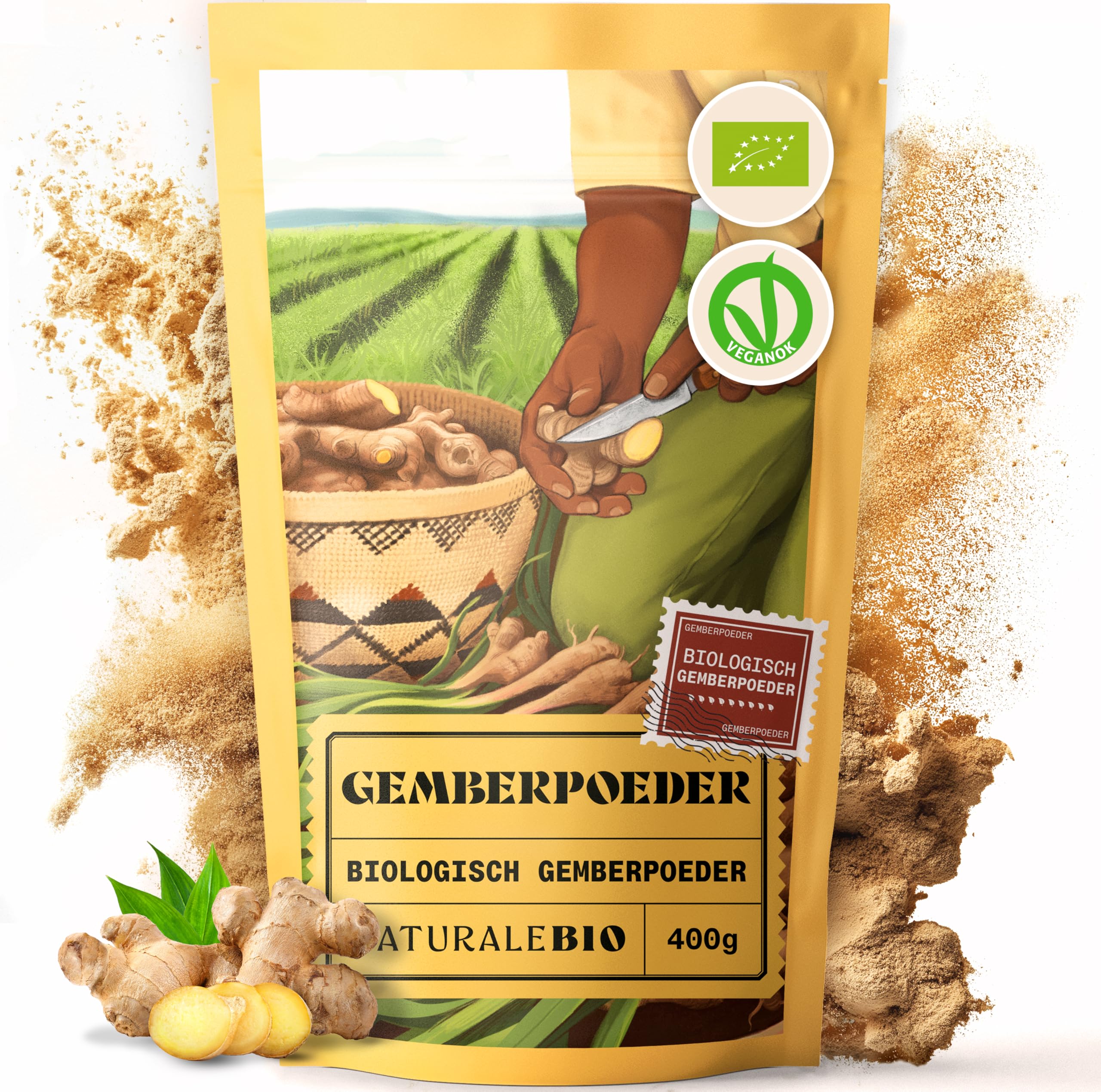 NaturaleBio Organisch Gember poeder 400g 100 Pure Gemalen Gemberwortel Niet-GMO, Duurzaam Geïmporteerd uit Peru Perfect voor Koken, Theeën, Smoothies Gezondheidsremedies Gember 400 g (pakket van 1)