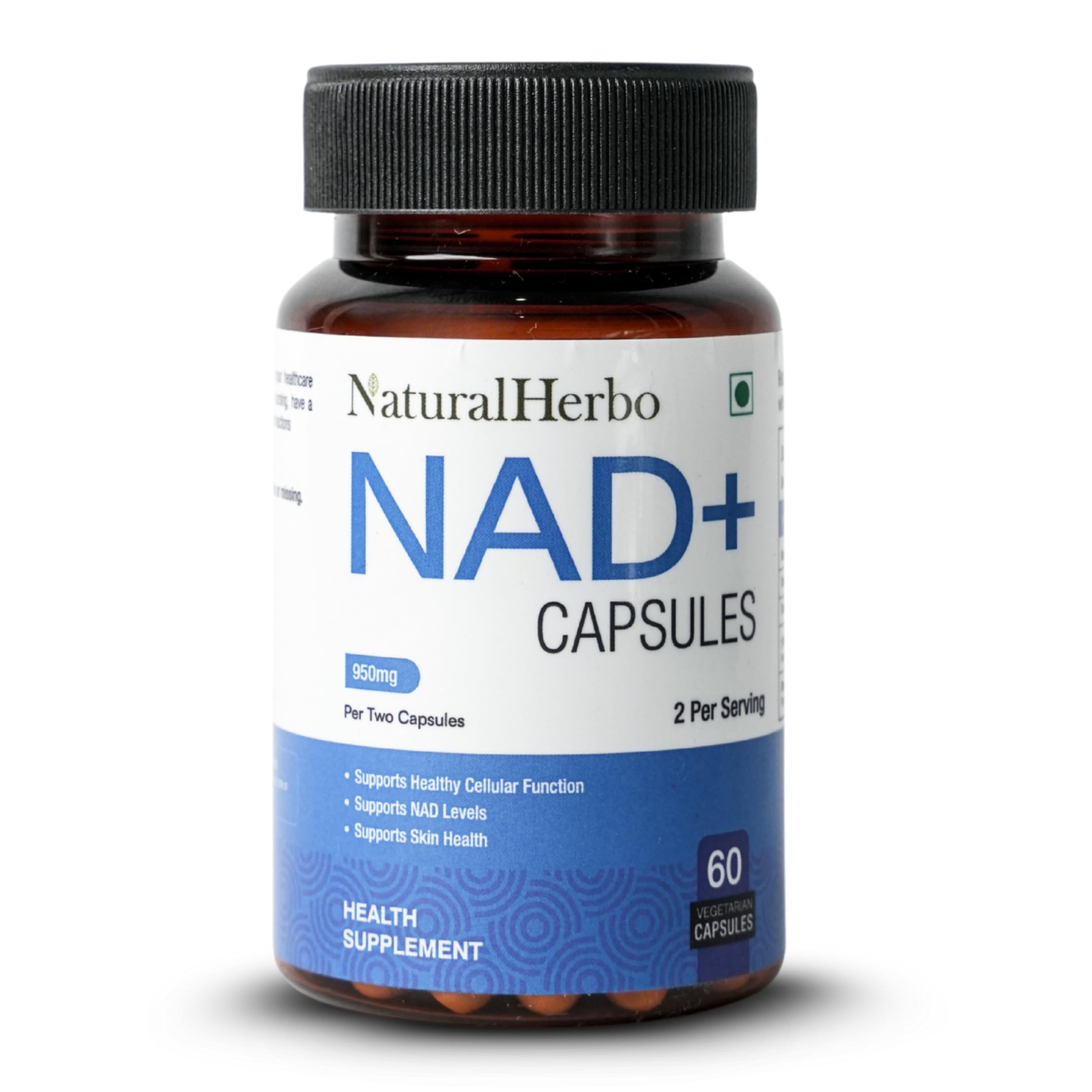 NaturalHerbo NAD+ Supplement 950mg Per Serving (Nicotinamide Adenine Dinucleotide), NAD+ Supplements for Men & Women, 60 Vegan Gluten-Free Capsules, 30 Day Supply