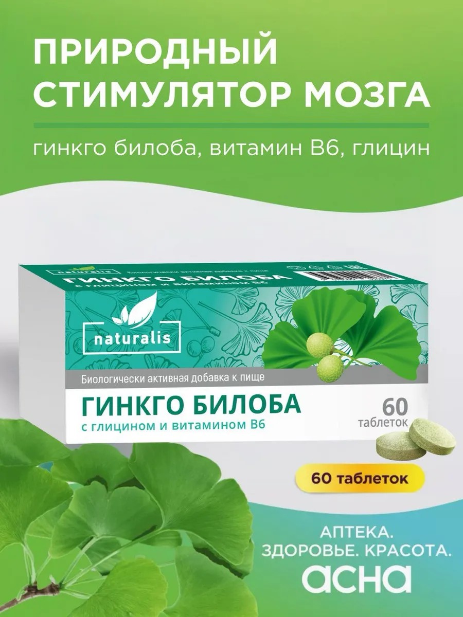 Натуралис Гинкго Билоба - сбалансированный комплекс для нормализации мозгового кровообращения, концентрации внимания и улучшения эмоционального состояния. В составе препарата три активных вещества: экстракт гинкго билоба, витамин B6 и глицин. Они укрепляют память и устраняют чувство тревоги и страха.