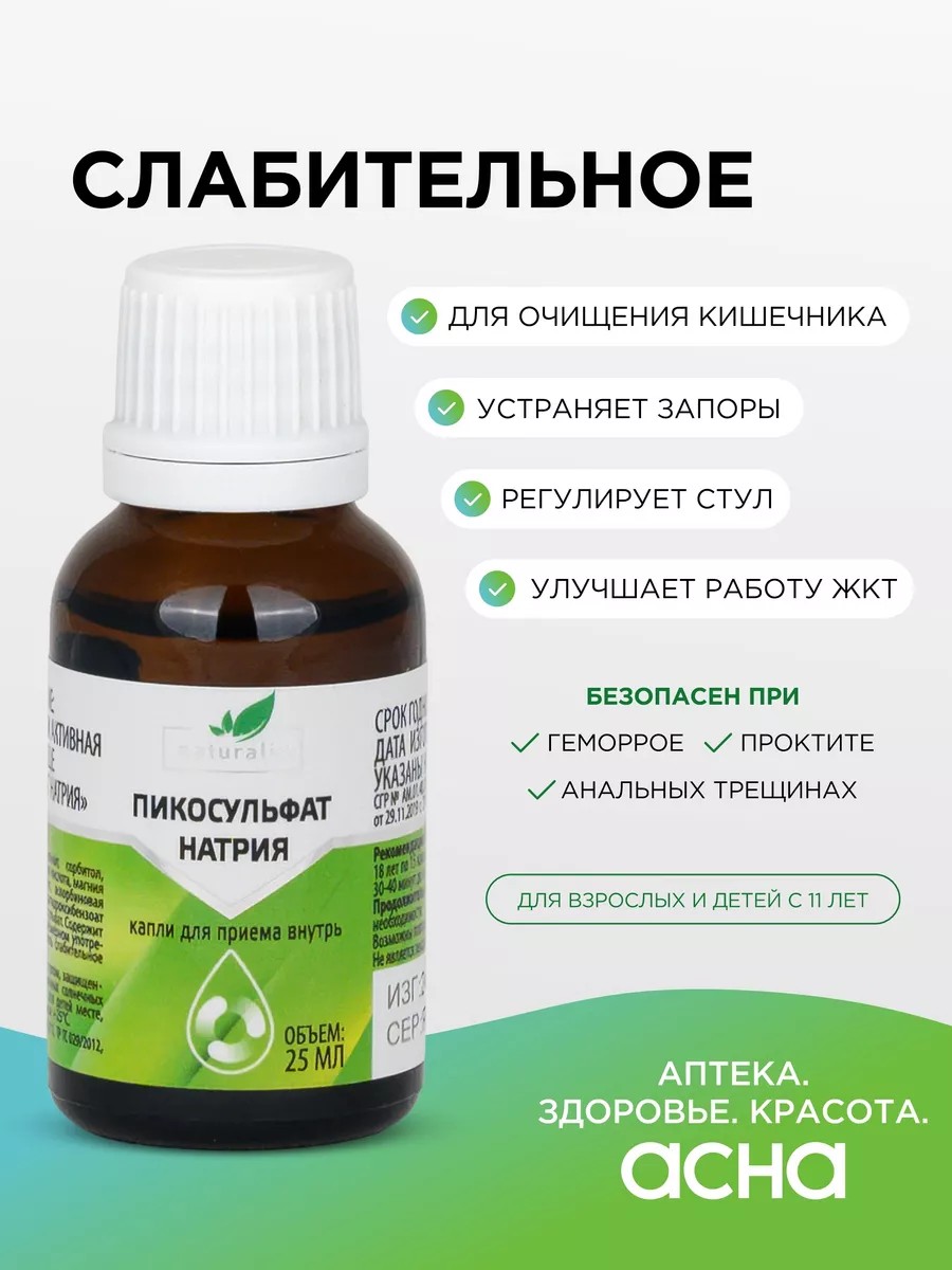 Натуралис Пикосульфат в каплях для кишечника - слабительное средство для устранения запоров и улучшения процесса очищения кишечника. Препарат состоит из пикосульфата натрия, хлорида калия, сорбитола, аскорбиновой и лимонной кислот. Они нормализуют работу желудочно-кишечного тракта и поддерживают моторику кишечника. Пикосульфат натрия капли устраняют спазмы и болевые ощущения в желудке. Сорбитол со слабительным действием вызывает опорожнение кишечника. Натуралис Пикосульфат - это мягкое слабительное от запора сильного действия.
