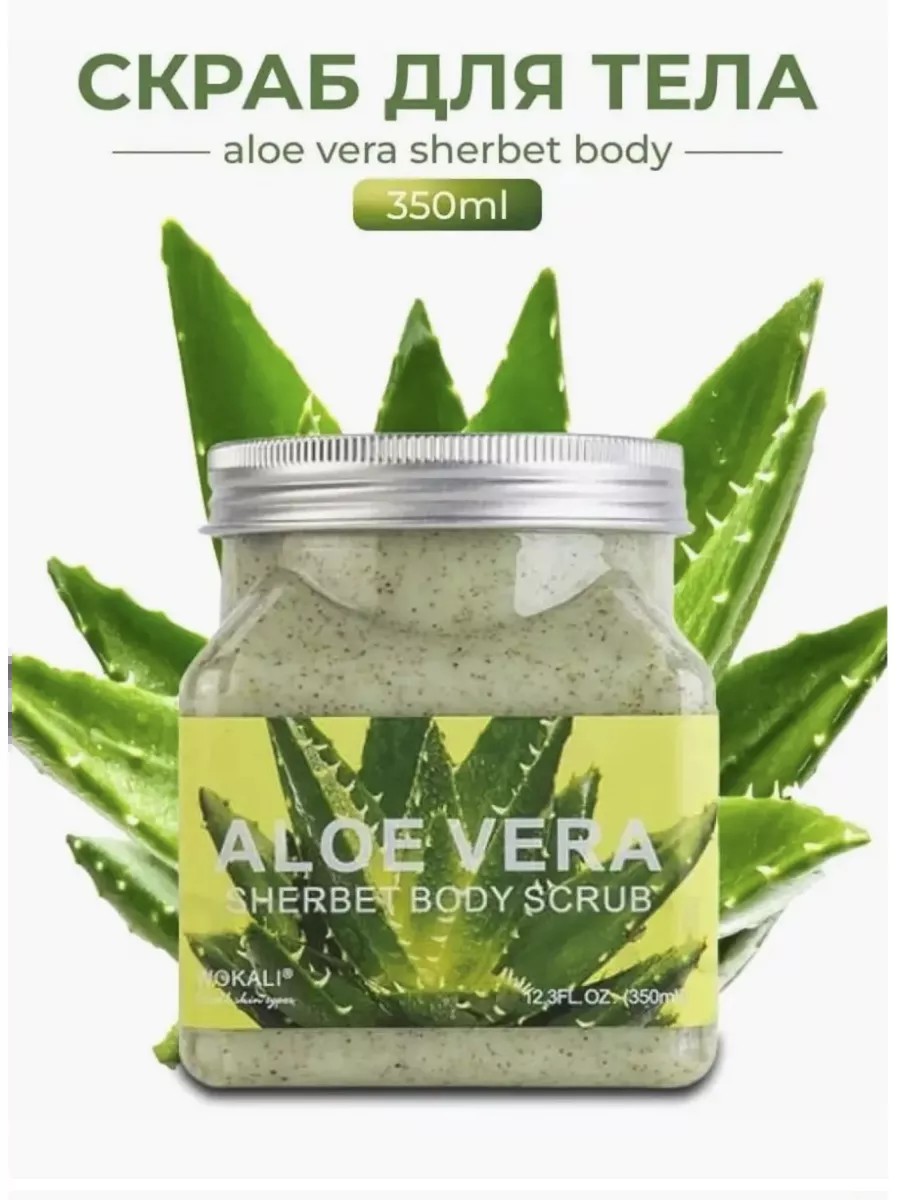 Скраб для тела Sherbet Body Scrub с Aloe Vera не только очищает вашу кожу от омертвевших клеток, но и питает ее многими полезными веществами. В скрабе содержатся витамины С и В6, оказывающие хорошее антивозрастное действие. После применения средства Ваша кожа будет очищенной, подтянутой, увлажненной, вернется здоровый природный цвет, уменьшаться покраснения и воспаления. скраб с алое и мелкими солевыми частицами, борется с целлюлитом, помогает уменьшит апельсиновую корку на бедрах ног, на руках и в области живота. Массирующие движения усиливают приток крови к тканям, кровообращение улучшается и кожа получает необходимые витамины и минералы. Этот скраб пилинг для кожи особенно важен, если вы занимаетесь спортом, или у вас возникают отеки в жаркую летнюю погоду. Отшелушивающий комплекс деликатно устраняет старые клетки, шелушения и неровности, отбеливает. Скраб подходит для любого типа кожи. В формуле отсутствуют фталаты и парабены. Деликатная текстура подходит для лица. Способ применения: На влажную кожу нанесите немного скраба, разотрите массажными движениями с помощью губки или руками. Проблемные зоны - локти, колени, ступни - можно промассировать тщательнее. Через 5-7 минут смойте остатки теплой душем. Для закрепления эффекта воспользуйтесь кремом. Пилинг нужно делать 2-3 раза в неделю. Обладает очень легким ароматом.