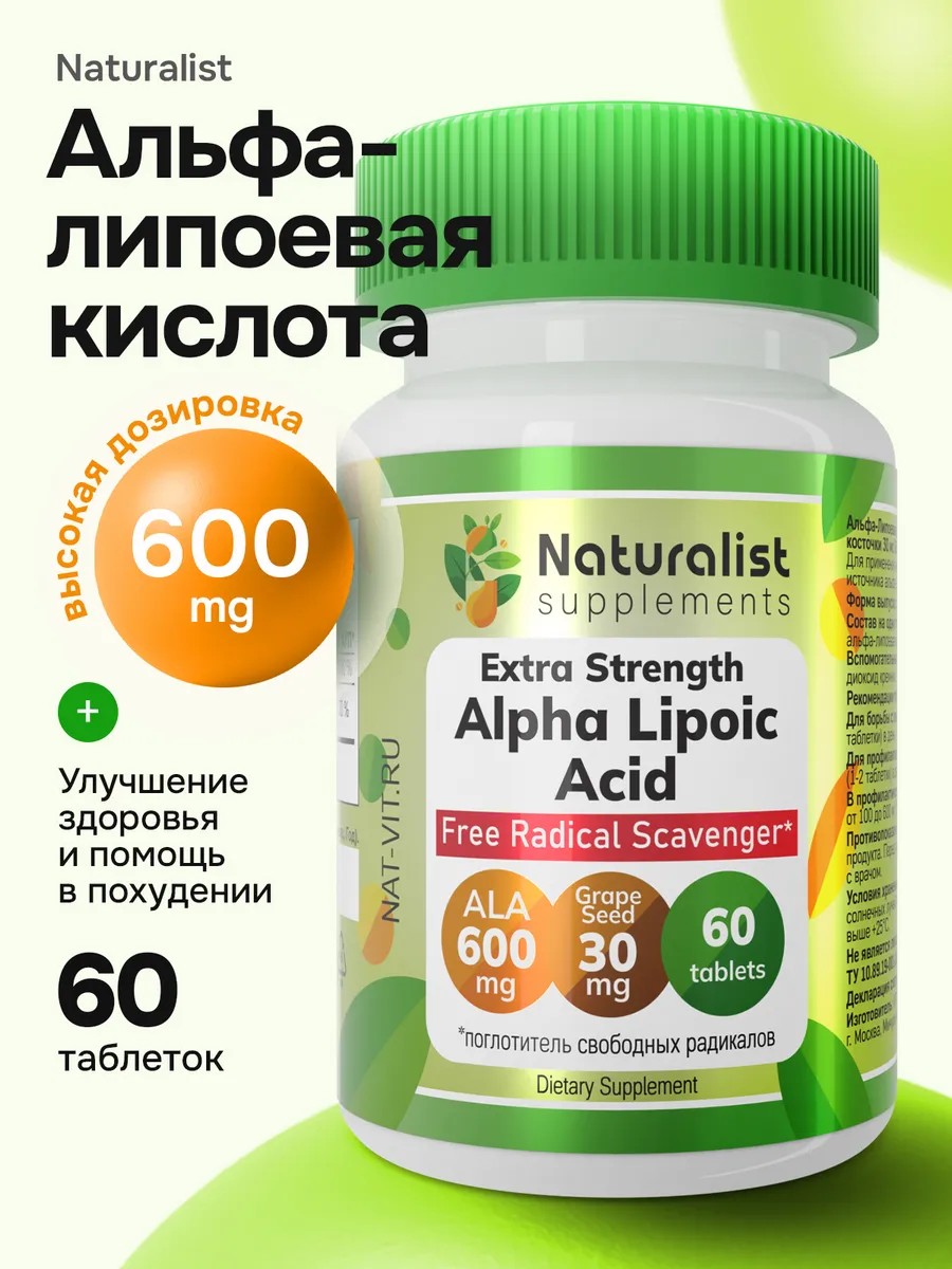 Naturalist Alpha Lipoic Acid 600 mg is a powerful weight loss and health supplement designed specifically for women and men seeking a better figure and overall well-being. This dietary supplement combines antioxidant activity and metabolism-boosting properties, effectively promoting fat loss and boosting immunity.