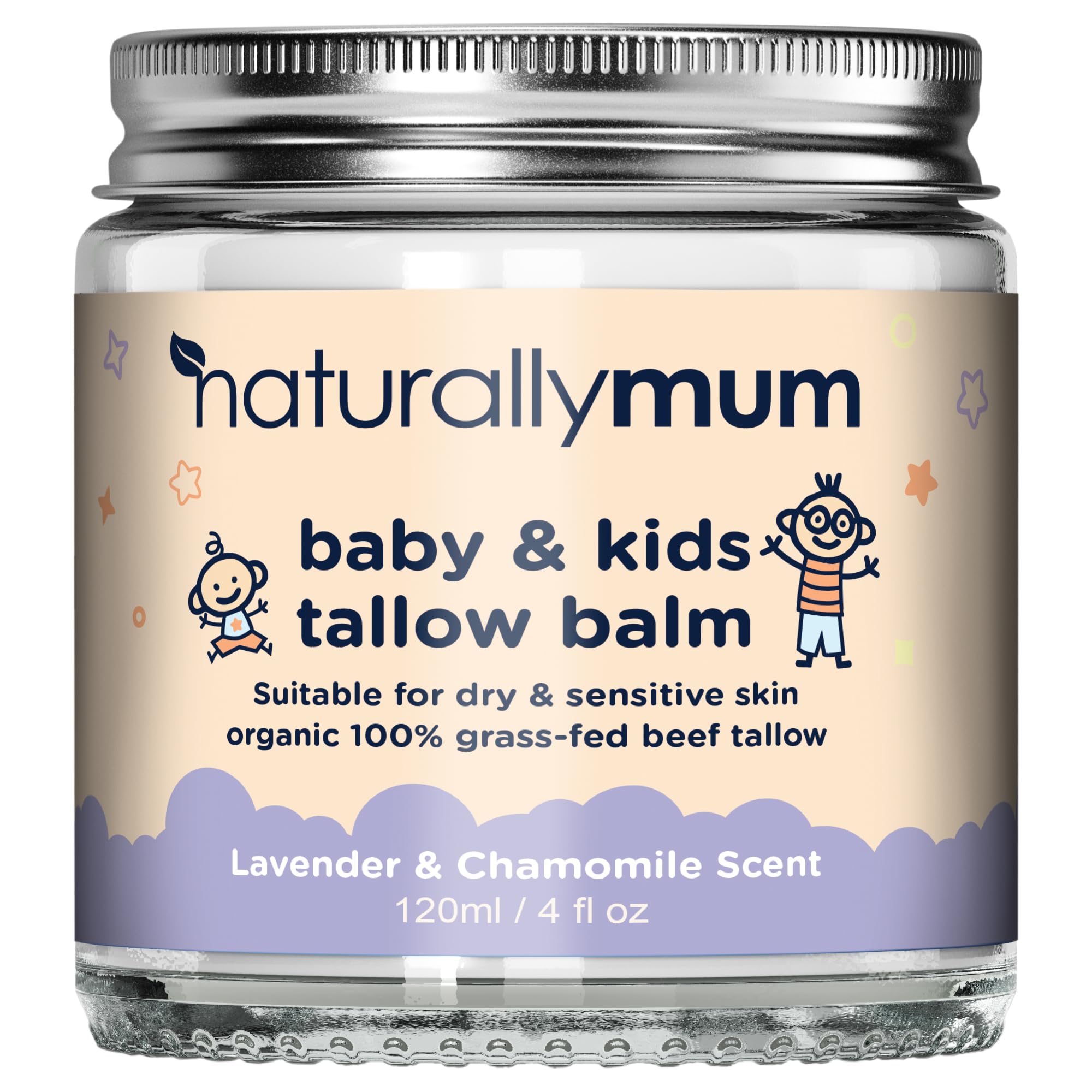 NaturallyMum Baby & Kids Tallow Balm | All-Natural Organic Grass Fed Beef Tallow | Moisturizing Cream | For Dry & Sensitive Skin | All in One Skincare Solution | 4.2 fl oz