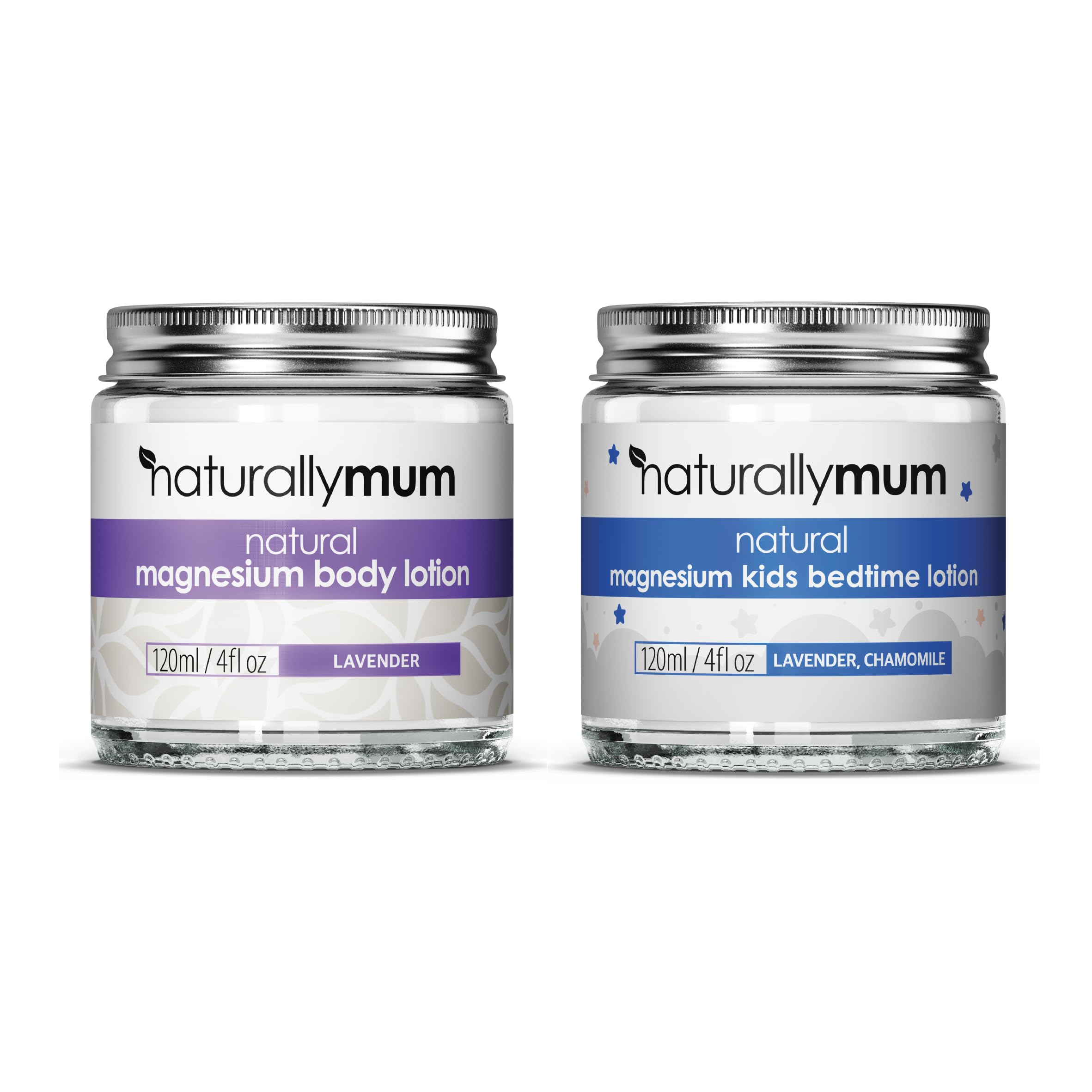 NaturallyMum Magnesium Body Lotion Bundle for Mum and Kids | Support for Sleep Heart Bone Nerve Gut and Muscle Health | Adult Lavender | Kids Lavender & Chamomile | 2 x 4 fl oz