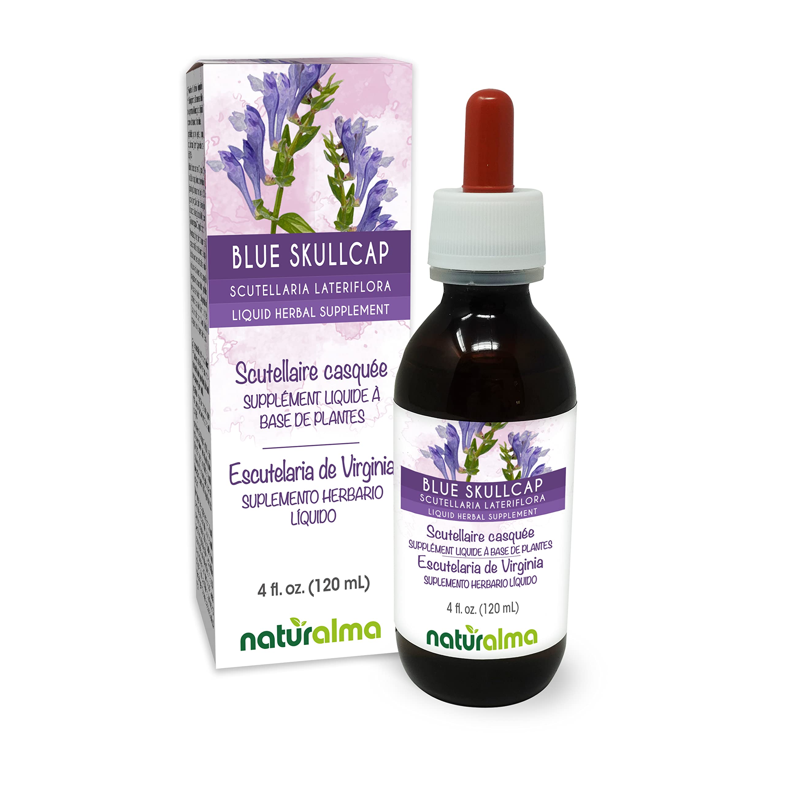Naturalma Blue Skullcap or Virginian Skullcap (Scutellaria lateriflora) herb Alcohol-Free Tincture - 4 fl oz Liquid Extract in Drops - Herbal Supplement - Vegan Alcohol-free 4 Fl Oz (Pack of 1)