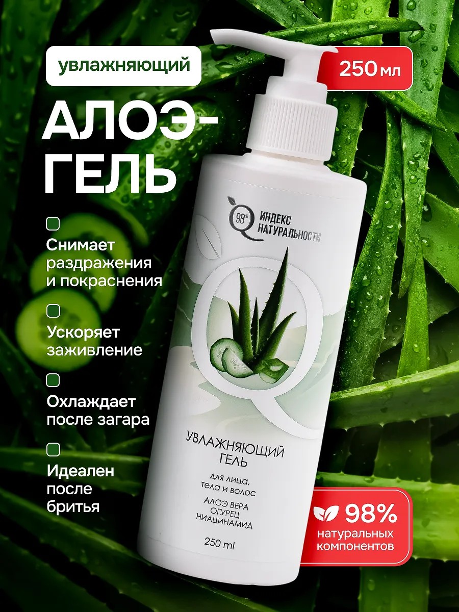 | Состав | Aqua (вода); glycerin (глицерин); Aloe Barbadensis Leaf Juice (гель алоэ вера); Aloe Vera Leaf Extract (Экстракт листьев алоэ); cucumis sativus extract (экстракт огурца); Niacinamide (Ниацинамид/витамин В3); Hydroxyethyl Urea (Гидроксиэтилмочевина/биомиметический увлажняющий актив) |