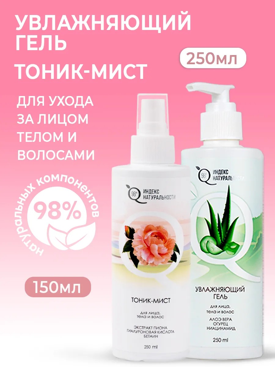 | Комплектация | Увлажняющий тоник спрей для сухой кожи 250 мл - 1 шт; Натуральный гель алоэ вера для профессионального ухода волос лица и тела 250 мл - 1 шт |