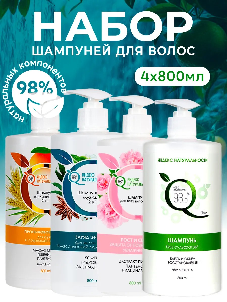 Уходовый набор Индекс Натуральности состоит из следующих бессульфатных вариантов.