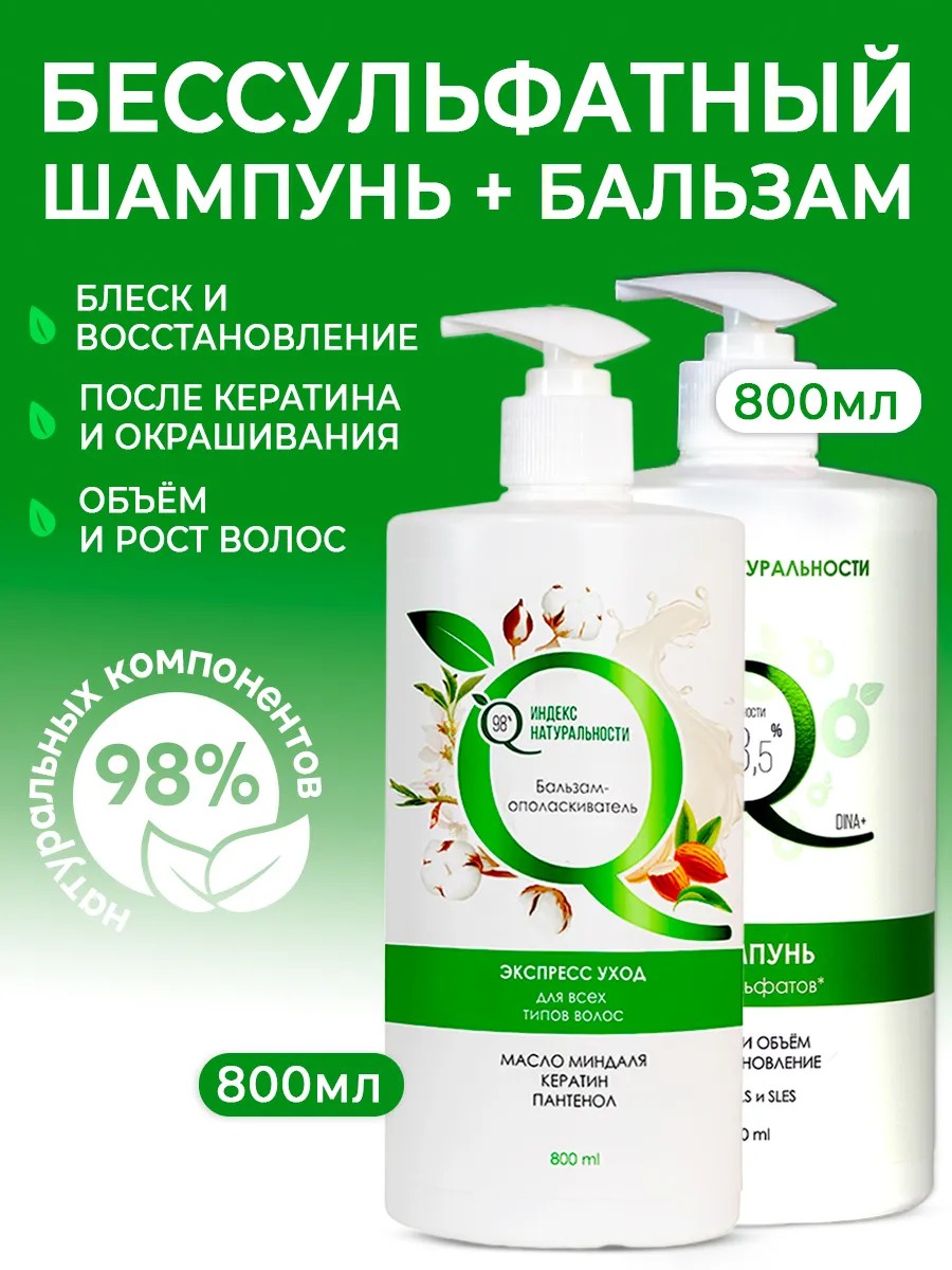 Бессульфатный женский шампунь+бальзам кондиционер для волос