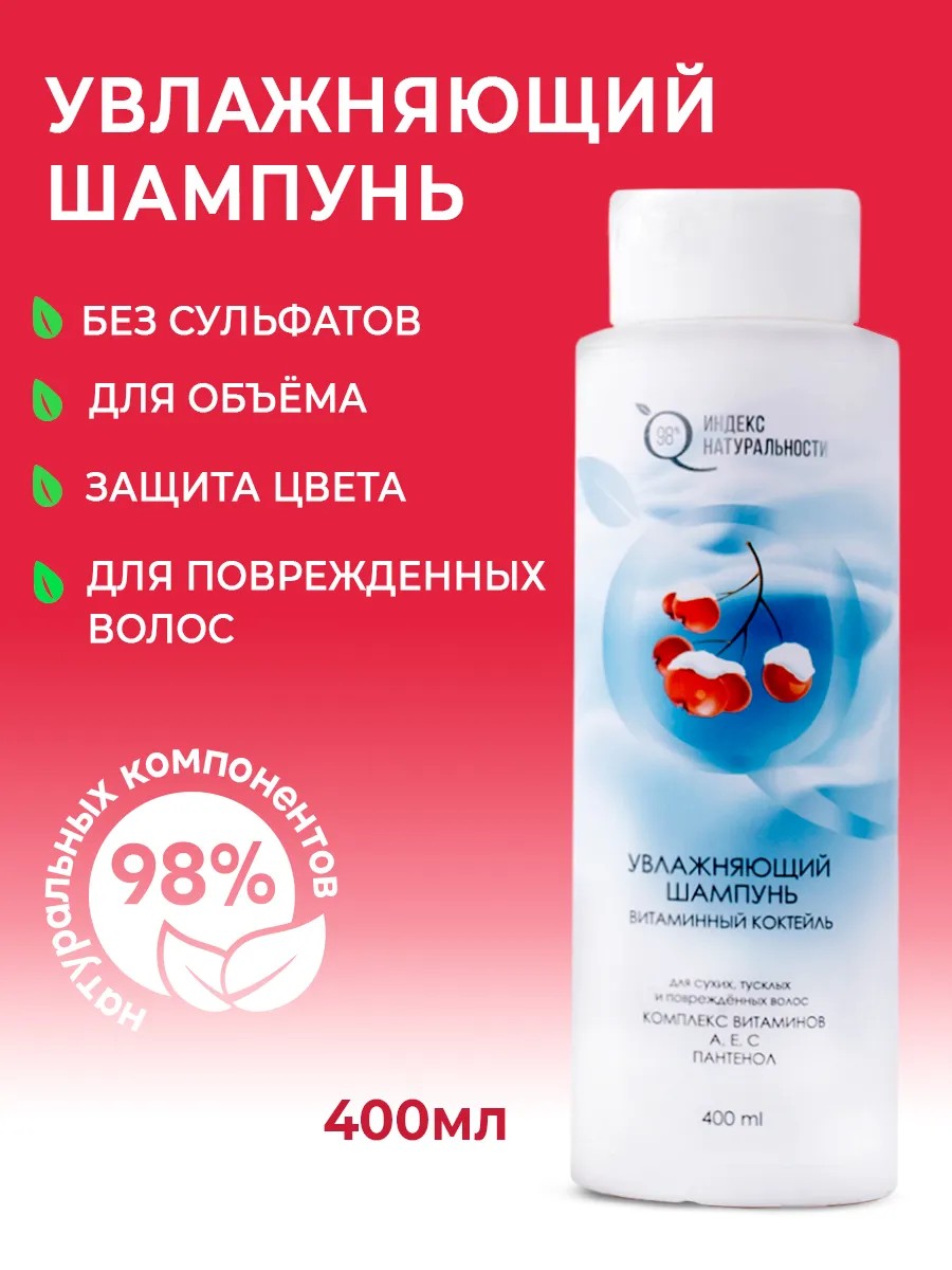 Индекс Натуральности Бессульфатный увлажняющий шампунь объем для окрашенных 400мл