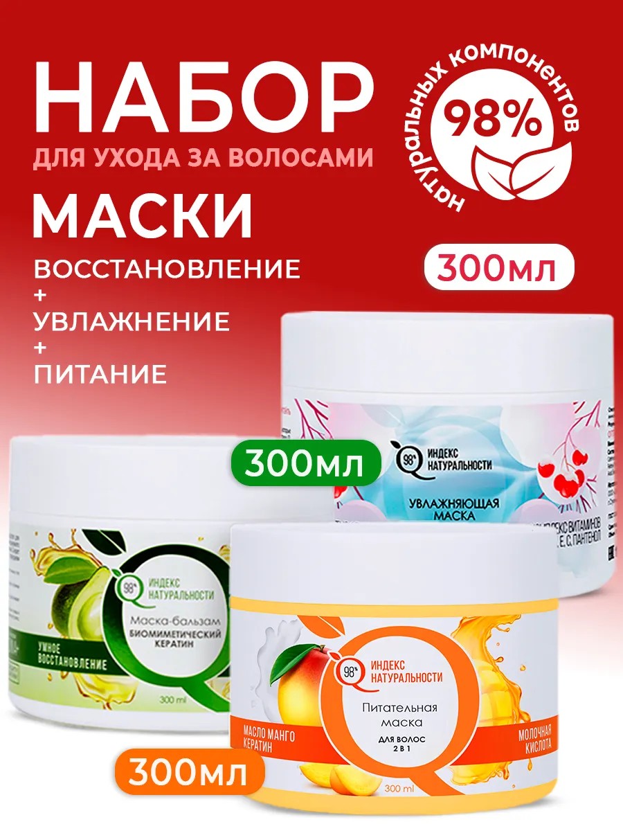 | Package contents | Moisturizing keratin hair mask 300 ml - 1 pc; Nourishing hair mask 300 ml - 1 pc; Restorative mask balm for hair growth 300 ml - 1 pc. |