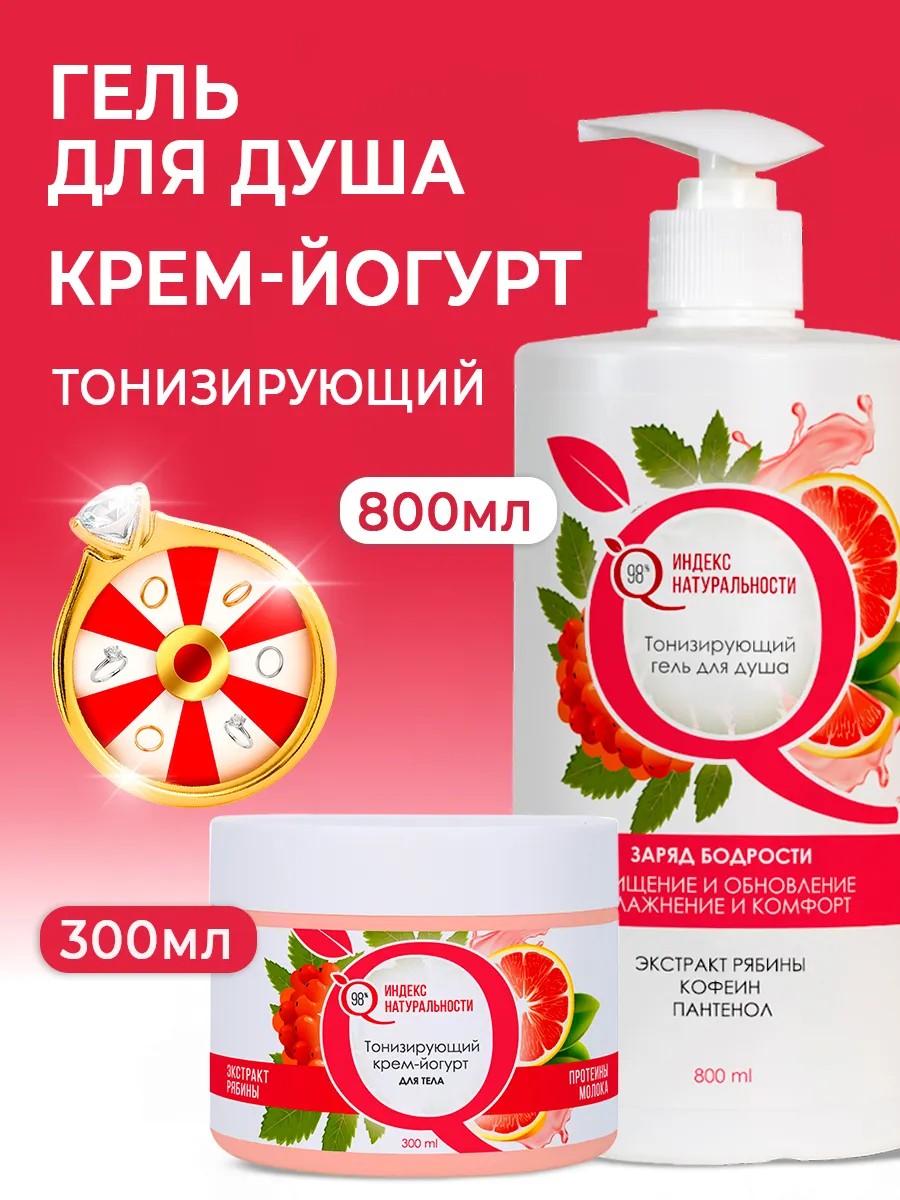 | Комплектация | Гель для душа Рябина 800 мл - 1 шт; Крем-йогурт для тела Рябина 300 мл - 1 шт |