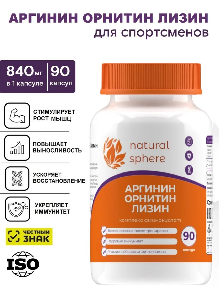Naturalsphere Аргинин Орнитин Лизин аминокислоты 90 капсул 1680 мг