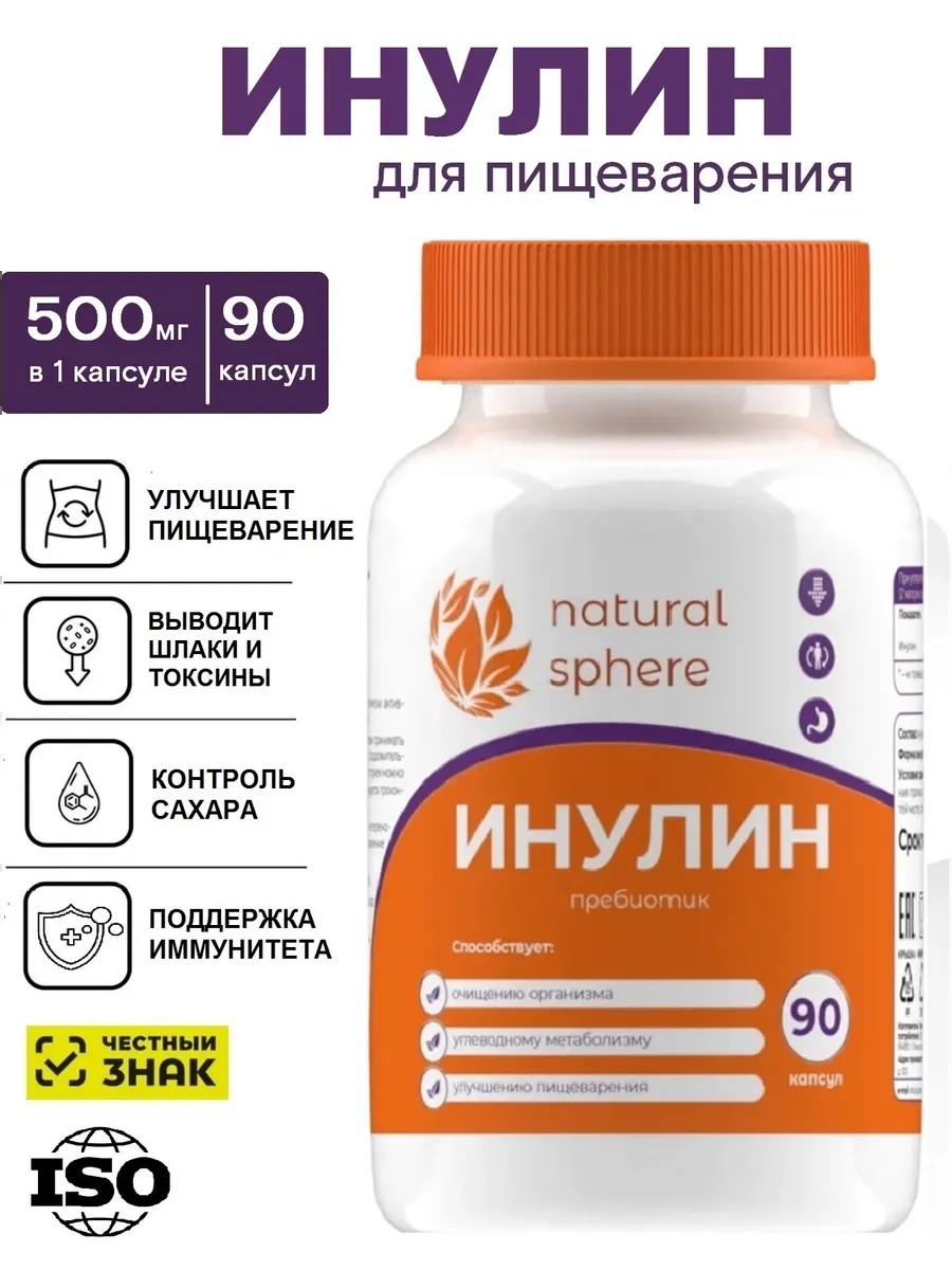 | Полное наименование товара | Инулин натуральный пребиотик, бад для кишечника, жкт, 90 капсул 1000 мг |