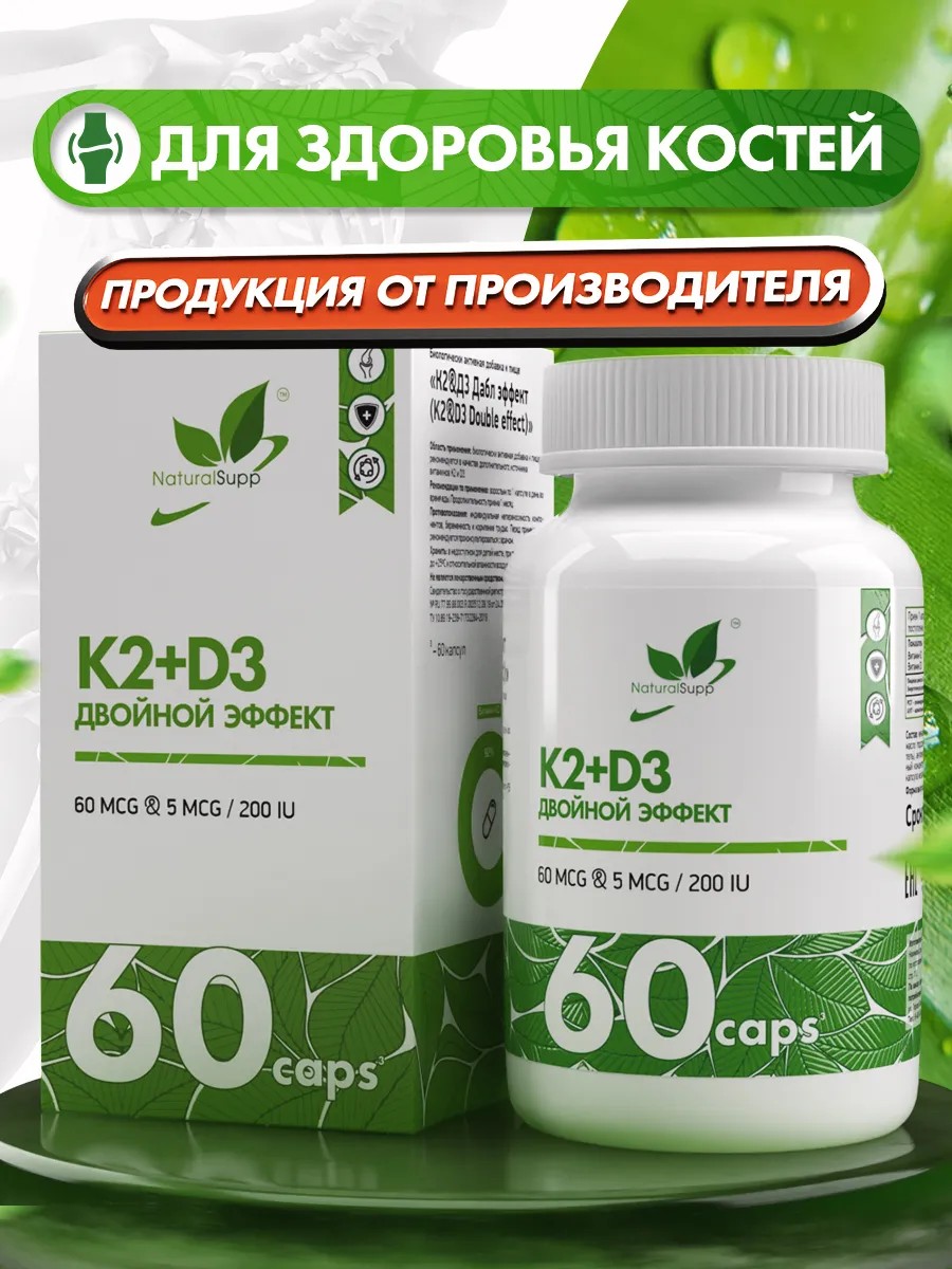 БАД К2 Д3 5 мкг 200 МЕ 60 мкг Для иммунитета 60 капсул
