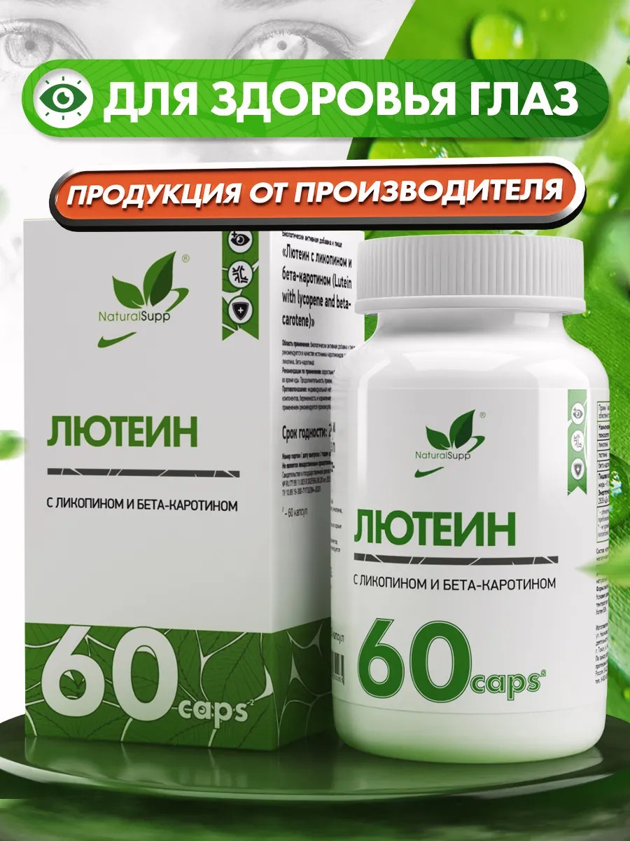 NaturalSupp БАД Лютеин с Ликопином и Бета-каротином Для здоровья глаз