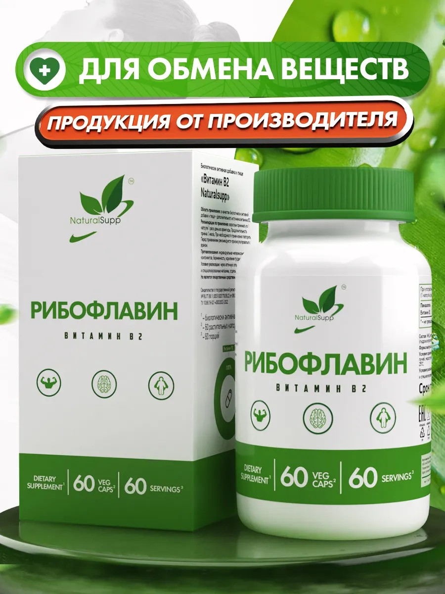 БАД Рибофлавин Витамин В2 6 мг Для обмена веществ Веган