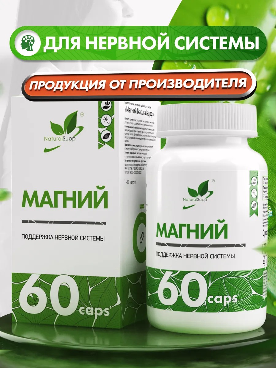 NaturalSupp БАД Магний Аквамин 195 мг От стресса 60 капсул