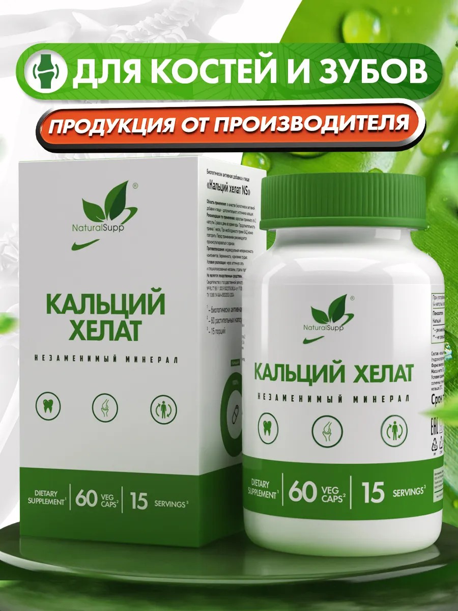 БАД Кальций Хелат 155 мг Для костей и зубов Веган
